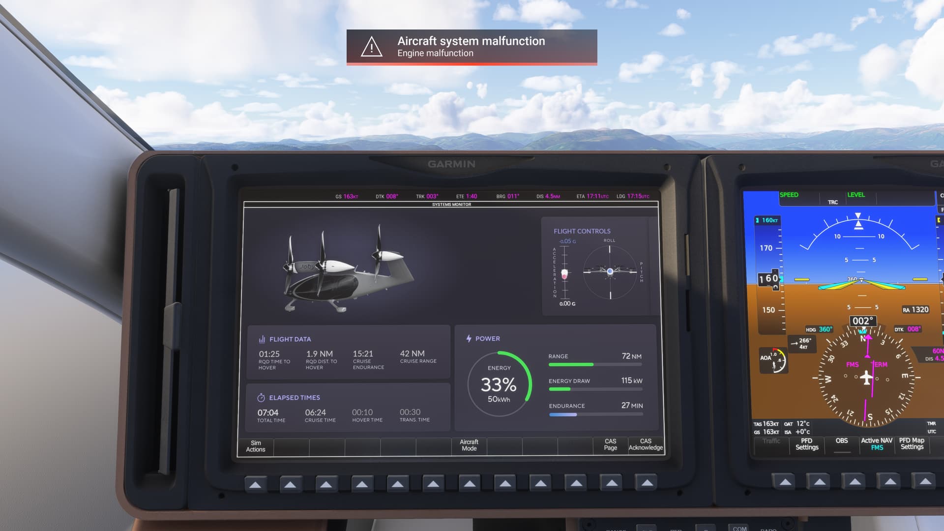 Archer can land easier conventionally - it can do both CTOL and VTOL. As I got closer to the maximum range and lowest battery expenditure, you’ll get a CAS warning that says VTOL is unavailable at current battery life - so you’re compelled to make a CTOL.