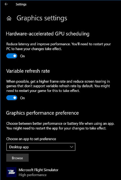 I’m not sure whether Hardware-Accelerated GPU scheduling is really making a difference in 3D but it does have a negative impact in VR. Also, if you’re using a G-Sync/Freesync monitor you should also enable Win10 Variable Refresh Rate.