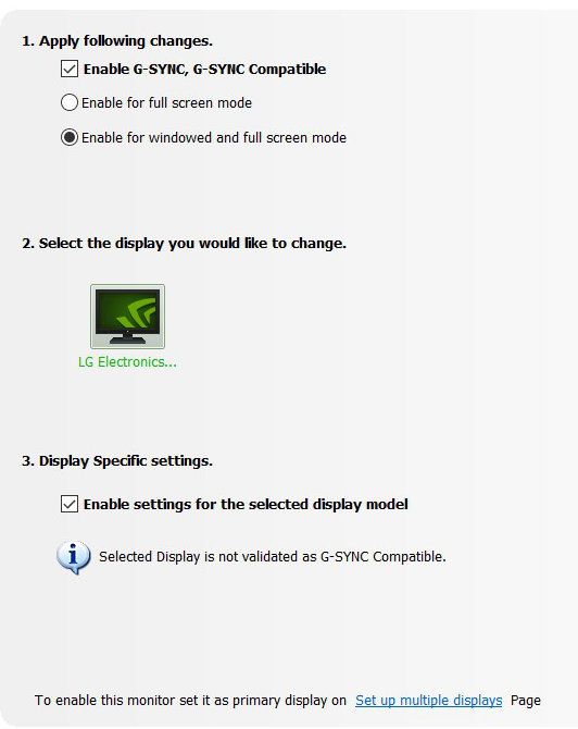 NB: this also requires also enabling Freesync both in Windows Graphics Settings and in the monitor control panel (see below).