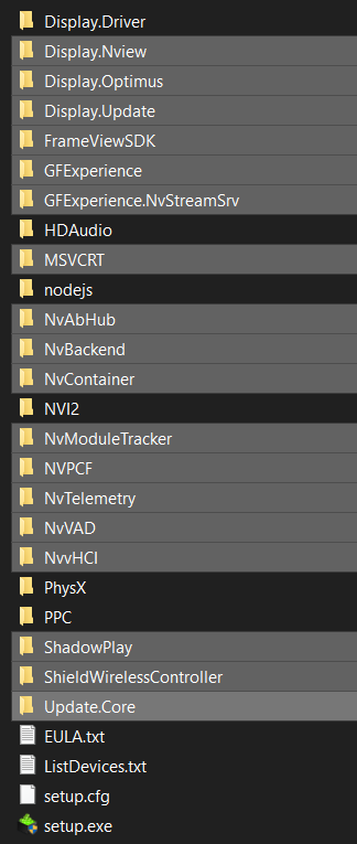 Then run setup.exe, don’t select GEForce Experience then select the components (I only install Video driver and Physx, and unselect USB and Sound)