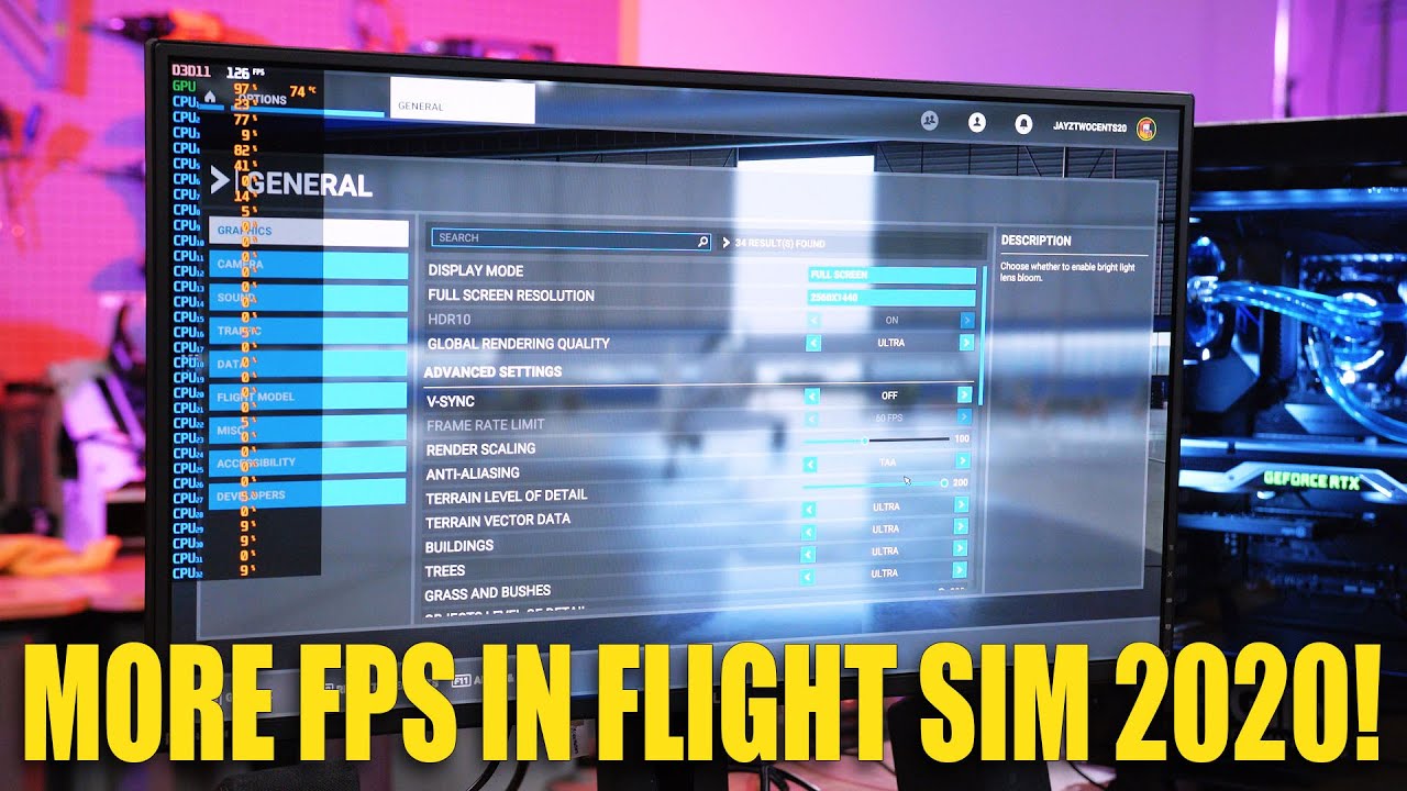 This video is perhaps one of the best starting points to go with for settings and then tweak from there, it’s NVIDIA based so not for everyone. One big difference in the settings war is the plane you are using, for that video it’s the basic Cub(?) plane over New York, change the plane to something more complex then the frames will drop.