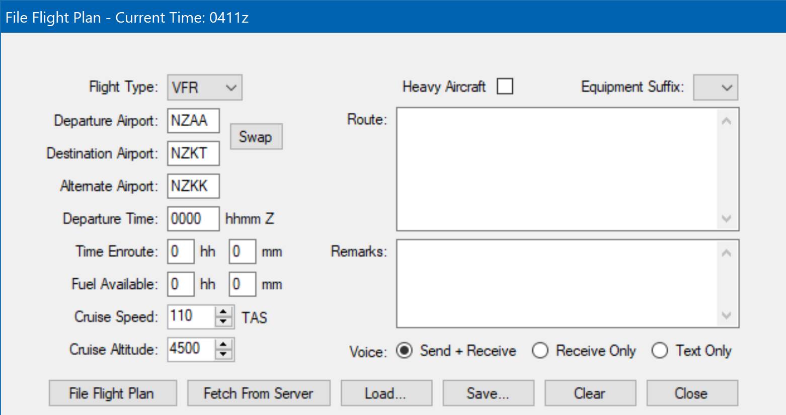 I finished the preflight check and started the engine. Then I entered my flight plan into vPilot and filed it. For VFR I just entered departure, destination, alternative airport (NZKK, in case I miscalculated my fuel, because of strong wind), cruising altitude and speed.