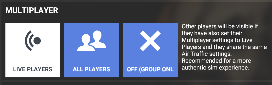 UPDATE!: Please, donāt use this settings. I learned that for VATSIM it is important to switch off multiplayer and AI traffic, so that only VATSIM traffic is in the simulator.