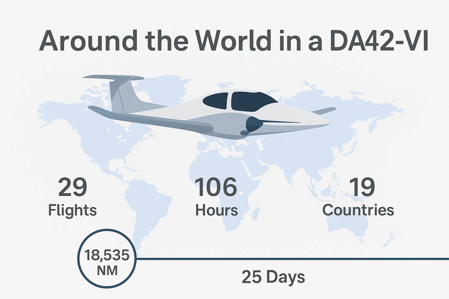 - I’d like to share with you my experience flying around the world in 25 days “23 Oct - 16 Nov 2025” with the Diamond DA42.