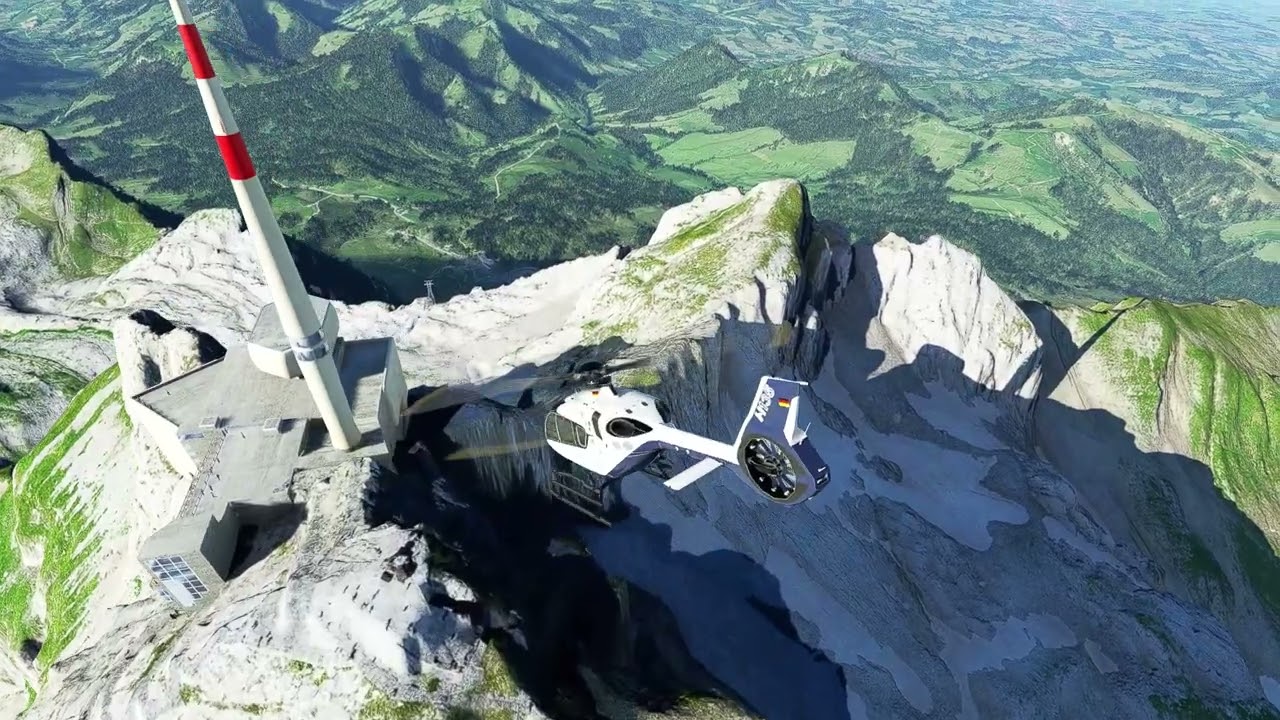 My H135 Helicopter flight at Saentis [LSSA ] Chasseing the animated cable cars as they travel up and down the Mountain the mountain