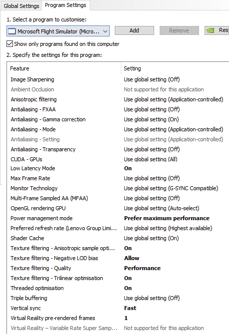 I applied the below to my Nvidia Profile for MSFS: