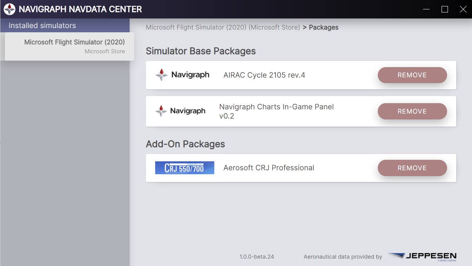 Not in Beta 24 version. Now it will show “UPDATE” and you just click it and it’ll update for you. The REMOVE and INSTALL is for Beta 23 and before. You might need to install the latest beta 24 software to get this function as well as the in-game Navigraph Charts panel.