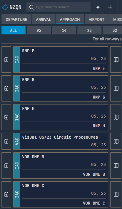 The spectacular NZQN Queenstown RNP AR approaches are only available with Navigraph data and are missing by default, or at least that was the case a year or two ago when I first subscribed to thier services.