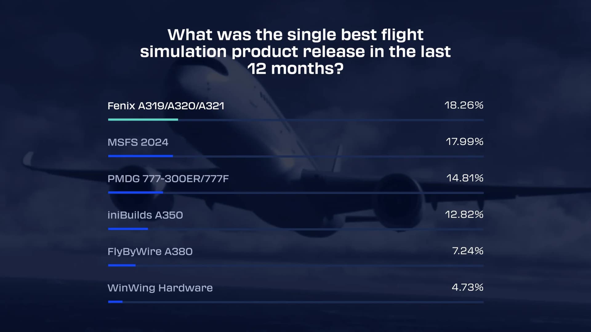 Also of interest is that the best flight simulation product as voted by the Navigraph survey takers, was all MSFS related, except for the WingWing Hardware: