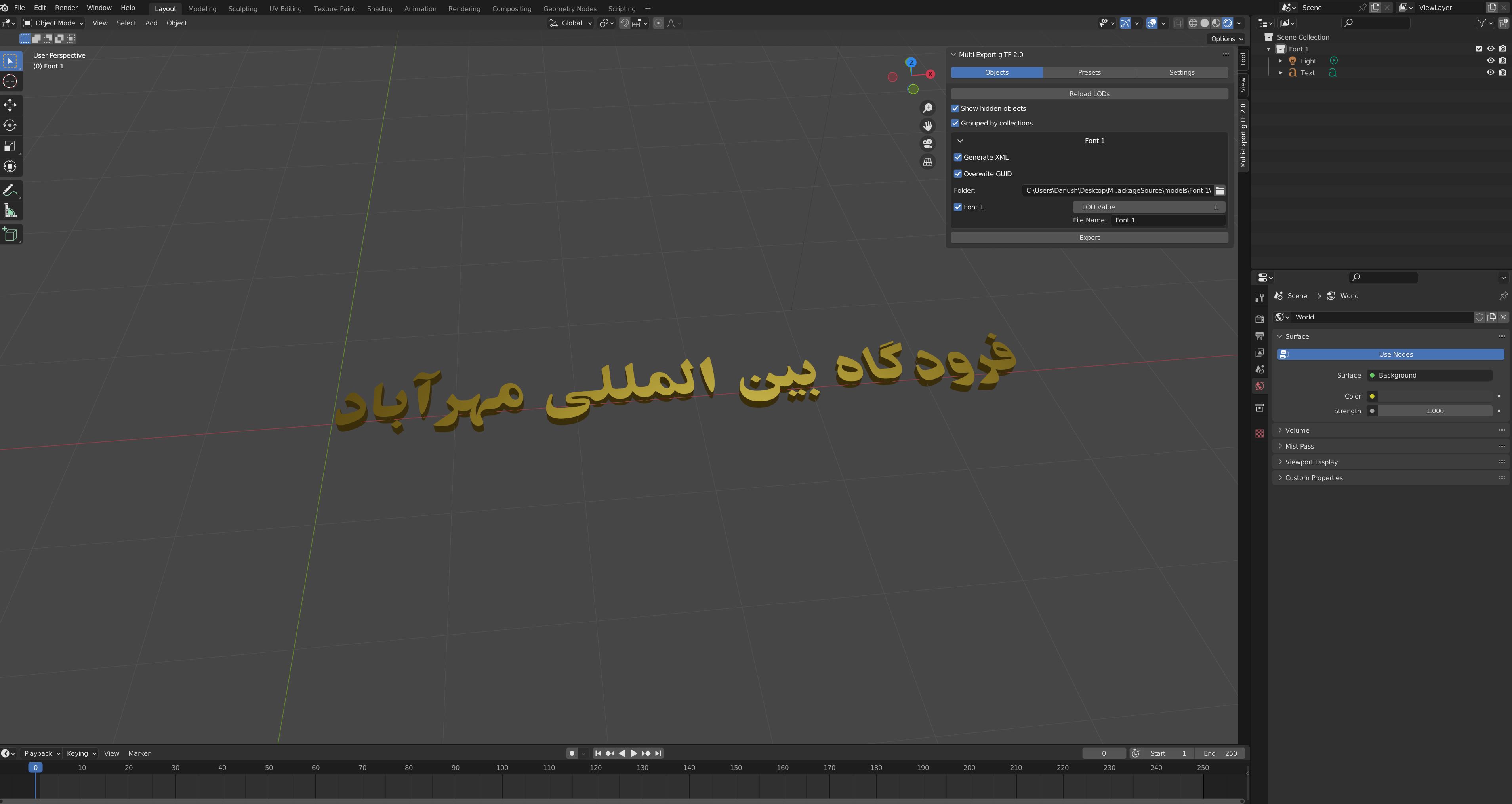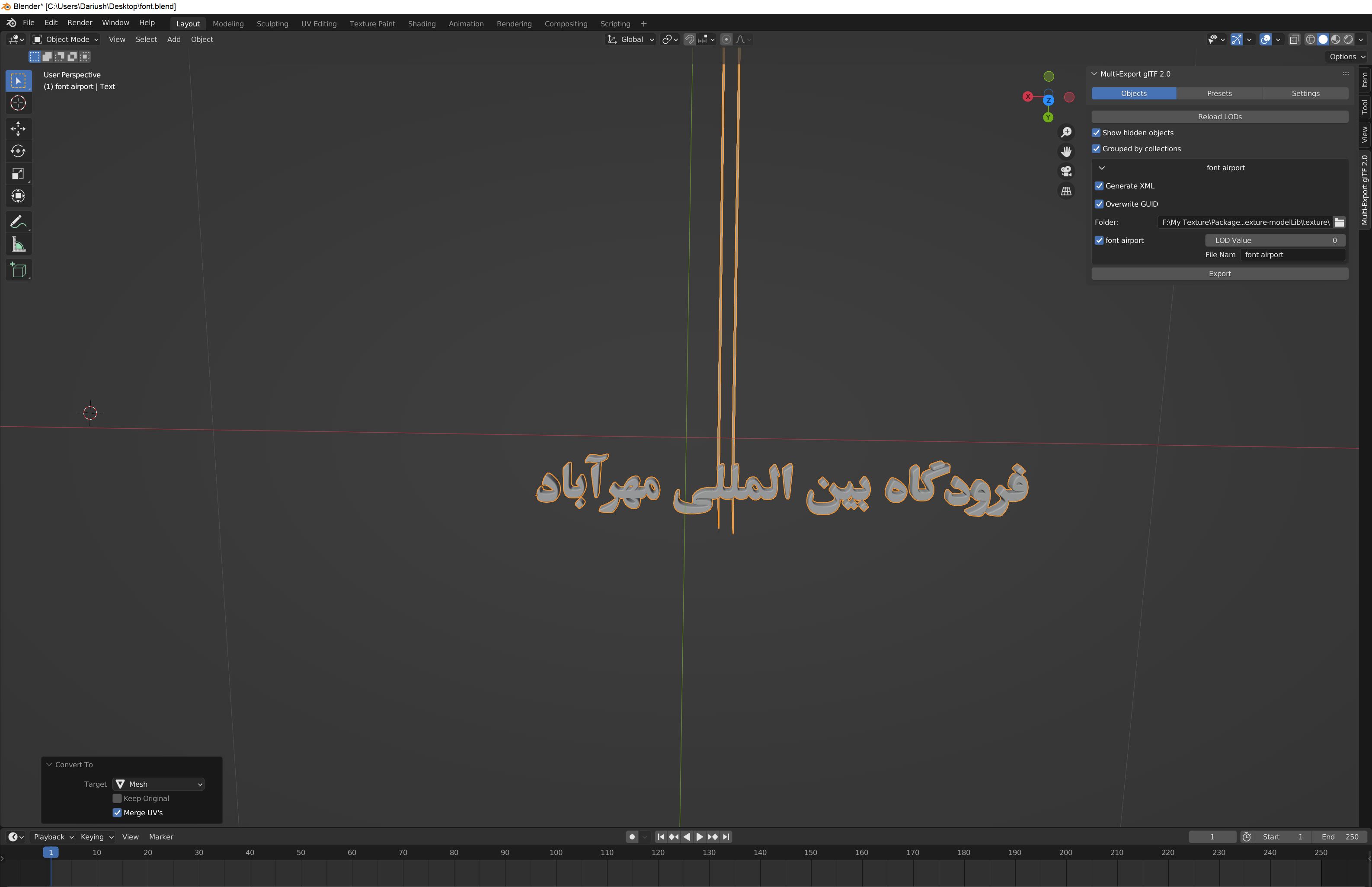 Hi, Is it possible to export this text as an object to the simulator to place on the wall of buildings The airport that I have already made?