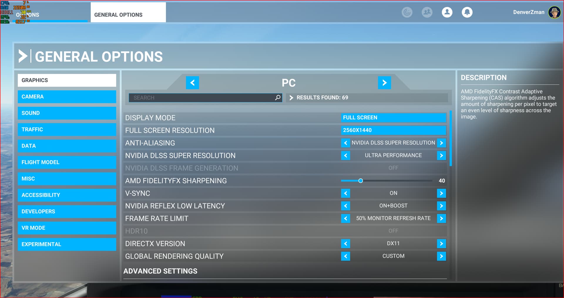 I have most settings on Ultra/High, and I get 80 FPS/ 12ms total latency in a GA plane flying over the Saudi desert @ 1500 AGL (desert and rocks.)