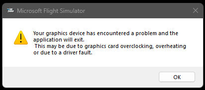 It’e becoming frustrating to keep getting these replies saying my system must be borked, when from 1250 hours of flying prior to 1.30.12.0 it worked perfectly (I hadn’t had a CTD for many months), and no hardware has changed, and anything software which changed recently, like an nVidia driver has been restored back to 4 previous generations which definitely worked fine, and which now all crash SINCE 1.30.12.0.