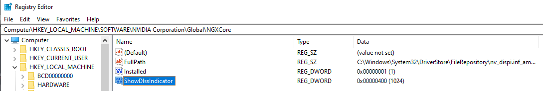 Do you have a DWORD (32-bit) value named ShowDlssIndicator