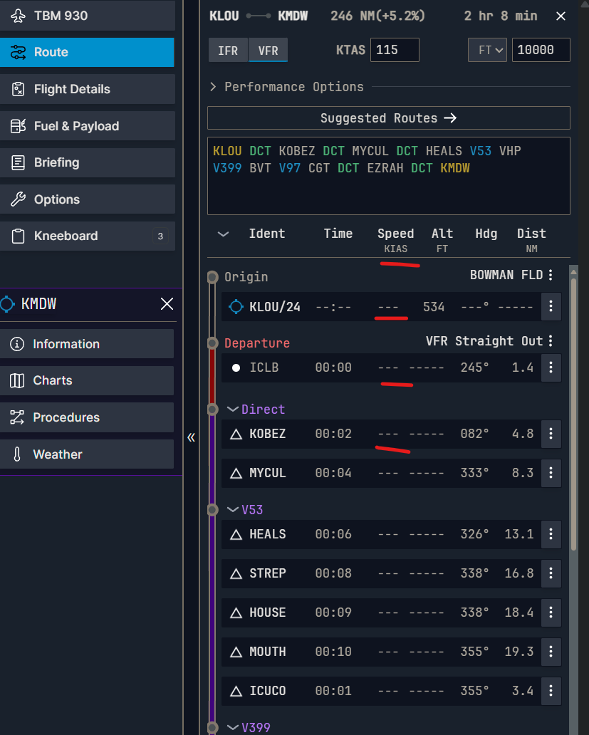 I’ve got my route enteres and I think all of the necessary info. I’ve selected the TBM 930 as my plane which should load all of the speeds and fuel info. However the flight plan is not filling in info like speeds and altitude as it should. Has anyone gotten this to work yet?