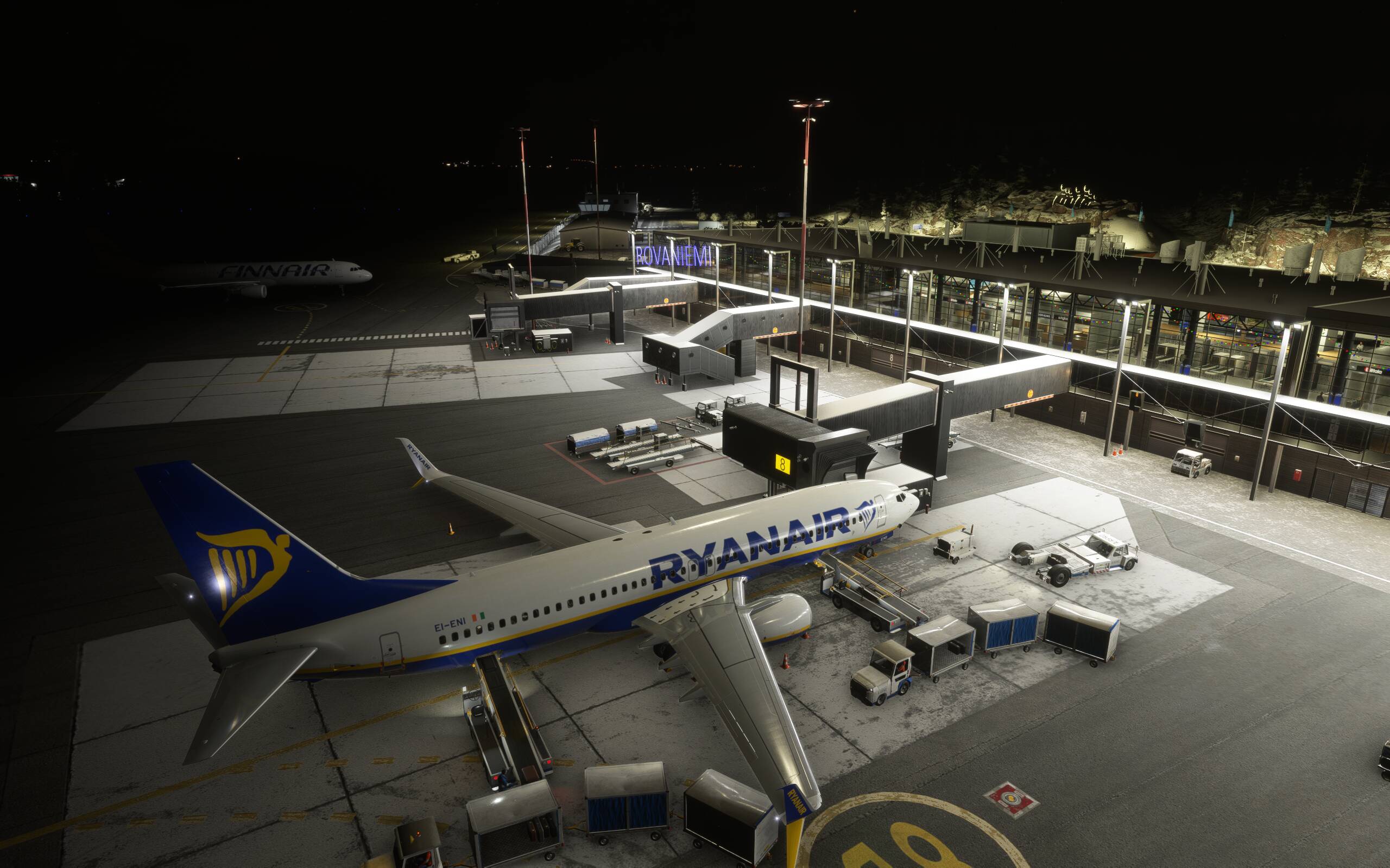 Another weakness is that there is no snow at all on the apron. This is a feature that I really like at Inibuilds’ Svalbard and also appreciate at Marcus Nyberg’s airports. At an airport like Rovaniemi, snow on the taxiways and runway is a must in my opinion. Other developers have shown that it is possible to implement snow.