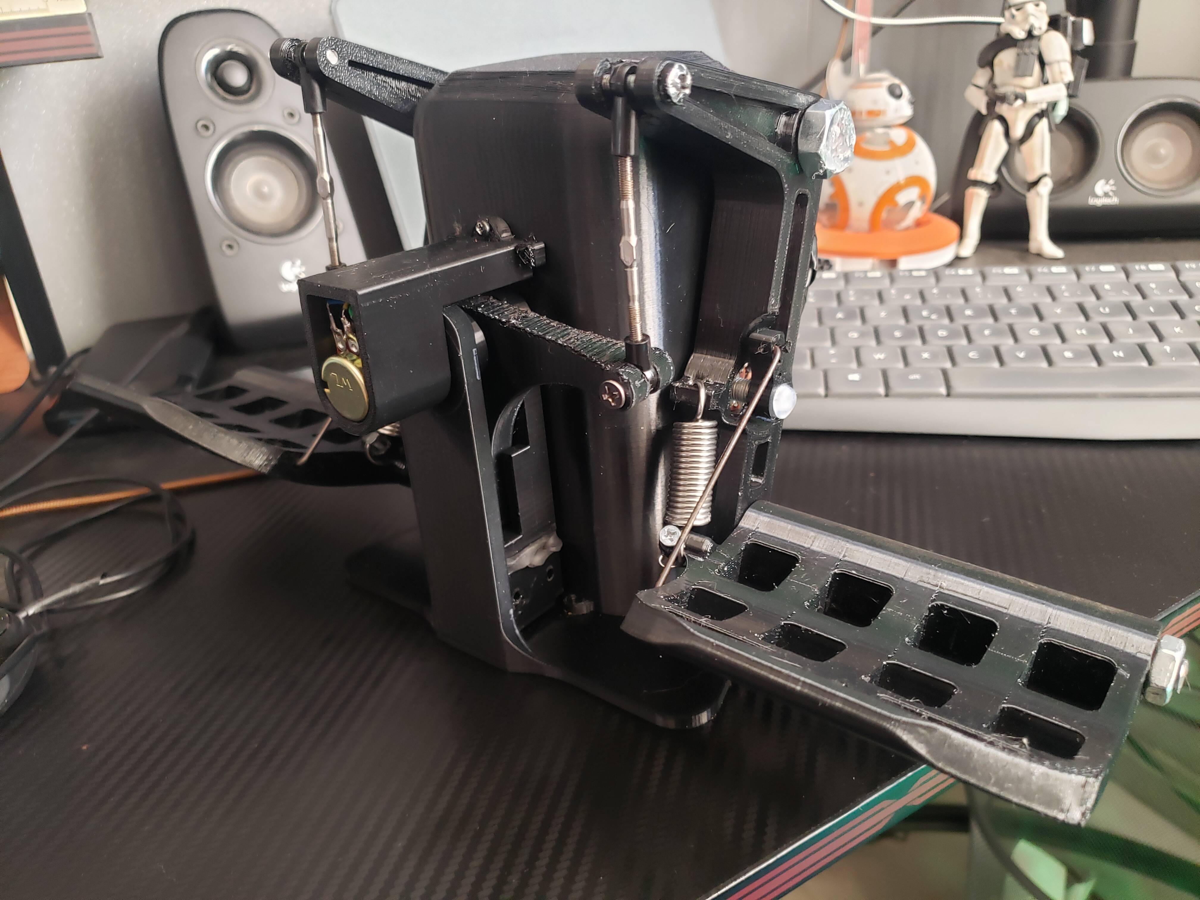Hello everyone, if you have a 3D printer and know how to solder, you’ll find here a pedal assembly I made that’s heavily inspired by the Trusmaster pendulum pedal.