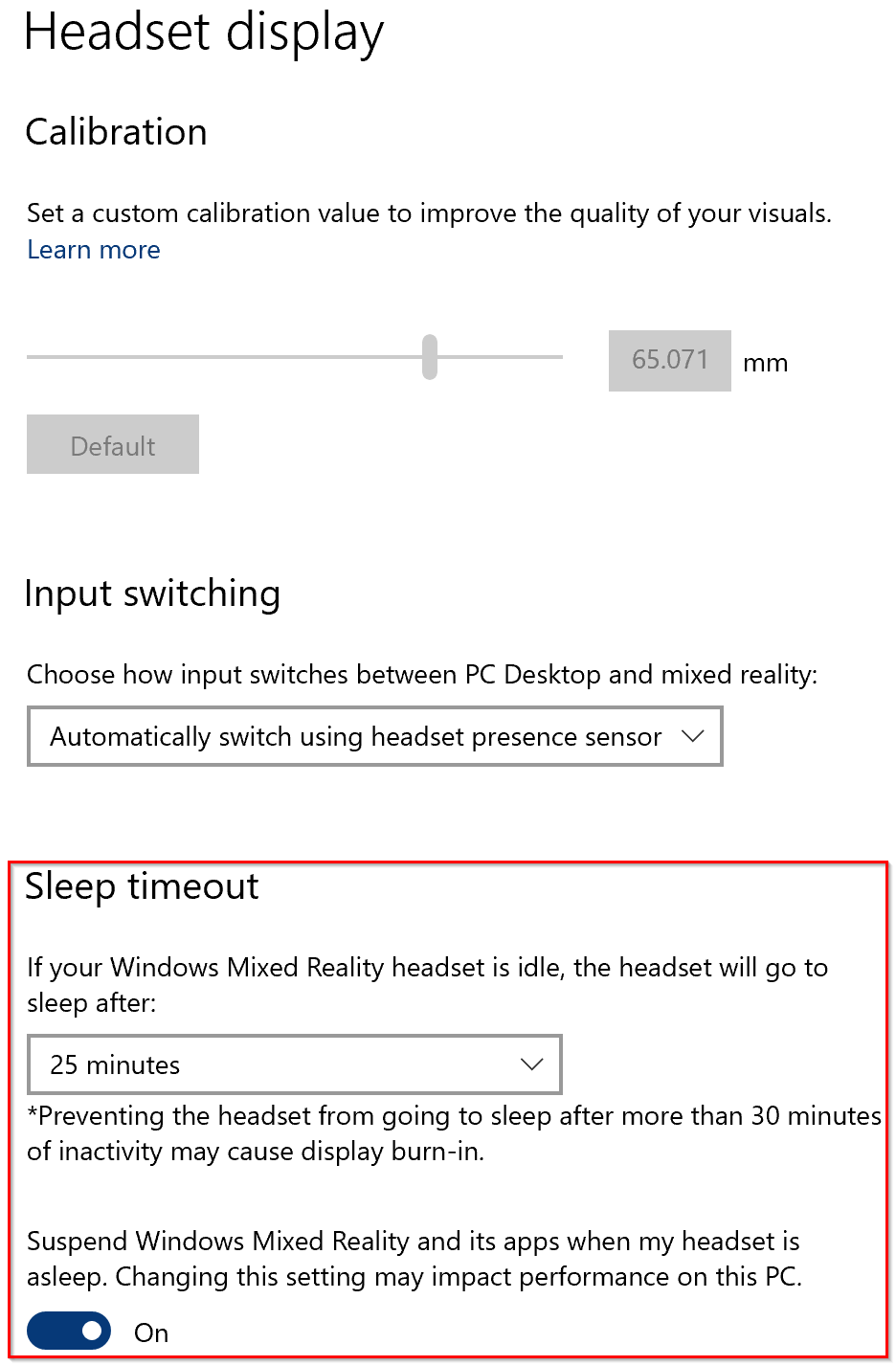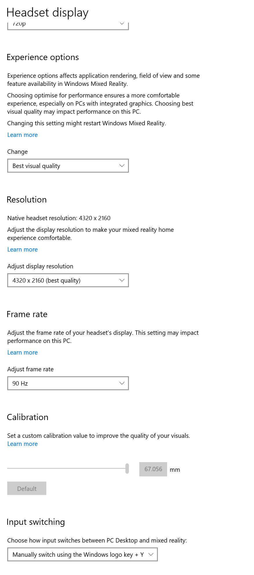 Just noticed a couple of settings I haven’t seen before on the WMR settings screen under the Headset section as seen below.