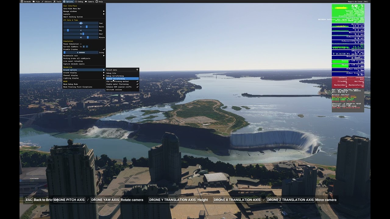 Ground options with its submenu “enable terrraforming” which shows huge difference in height