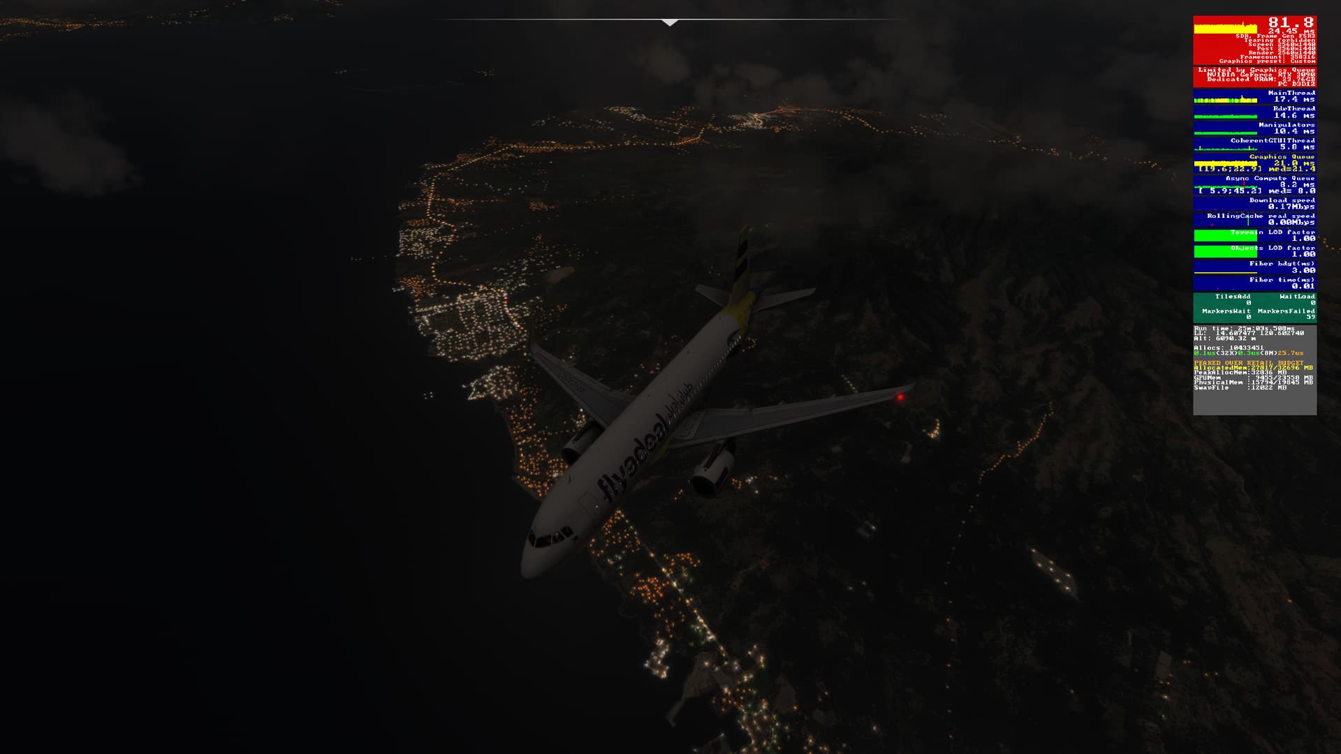 First of all, I would like to commend the team for finally removing the sepia mask during the night. I can finally do night flights without cringing. However, I do find that the night lighting is still too bright and too even and the orange lights in cities make it look like the city is on fire.