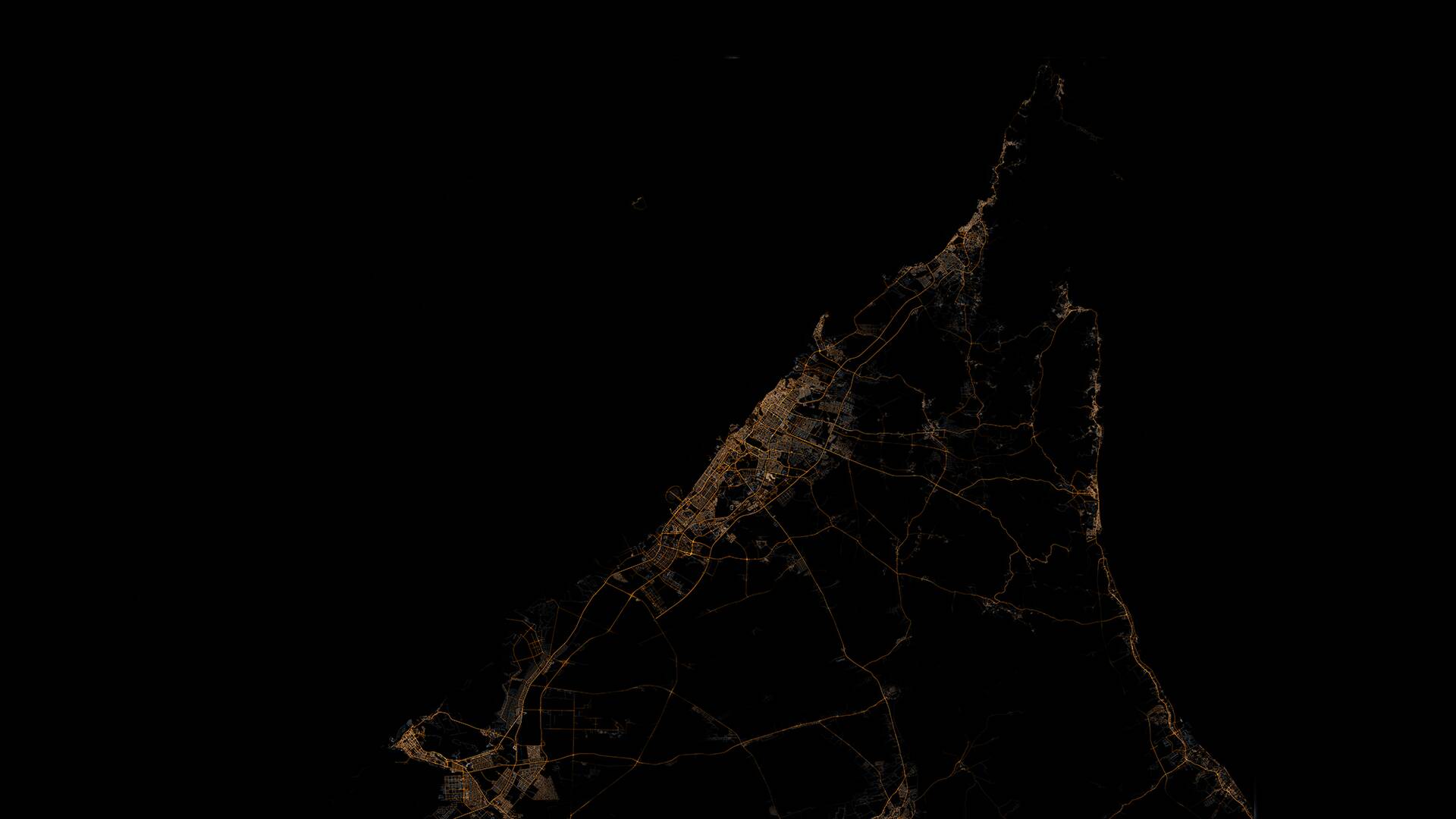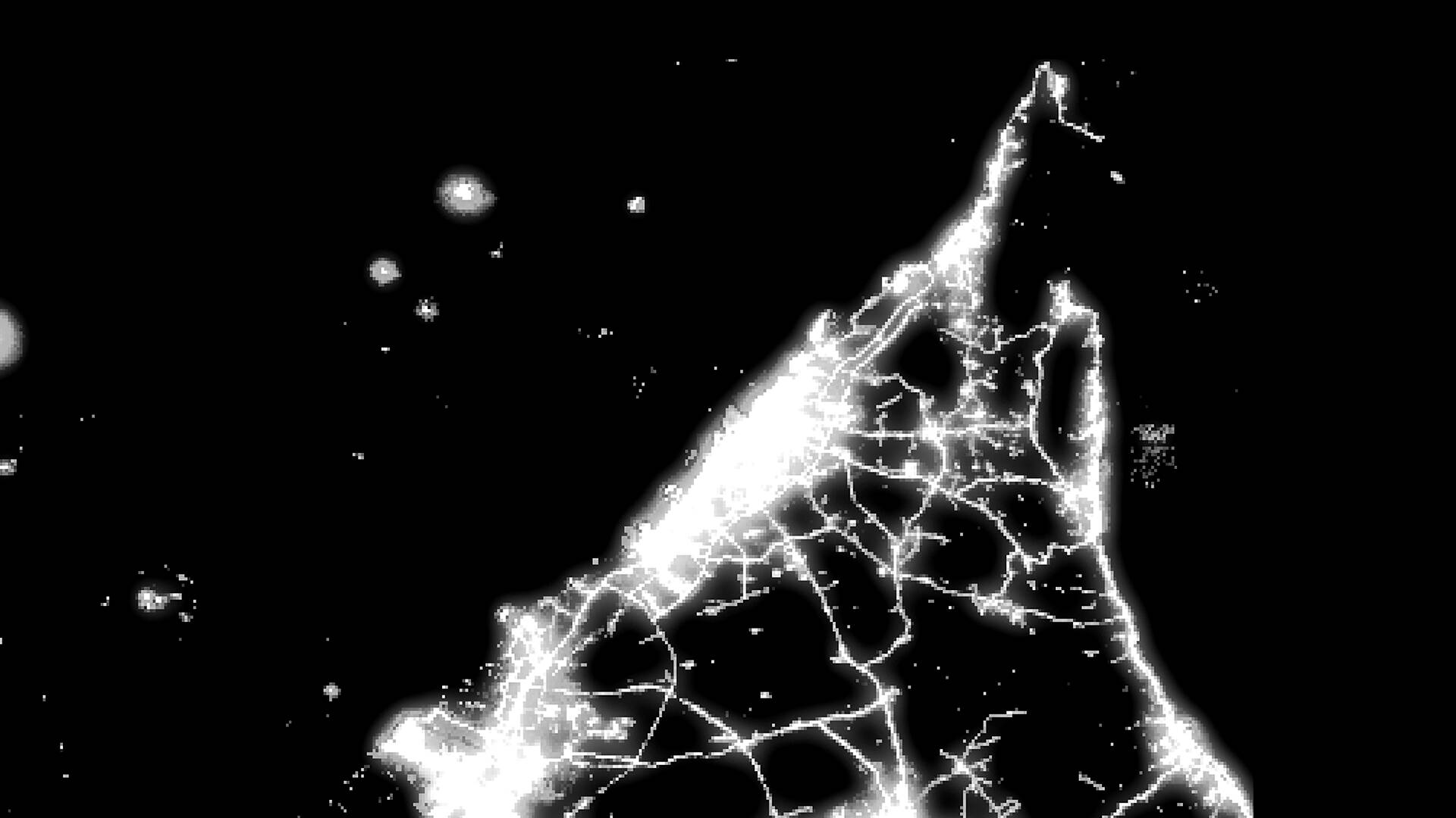 Third, lamps placed along OSM vector data and light-splash texture generated, masked using the Nasa data to prevent unlit rural roads getting “highway-lamps”.