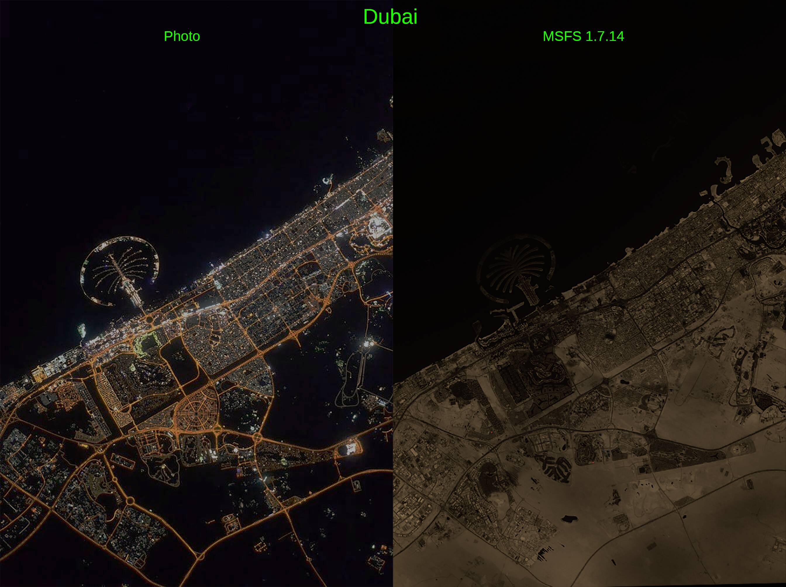 Take a look at Dubai in MSFS here… It makes it quite obvious what’s wrong with the previous versions reliance on the “Sepia Mask” / Nasa Black Marble illumination mask.