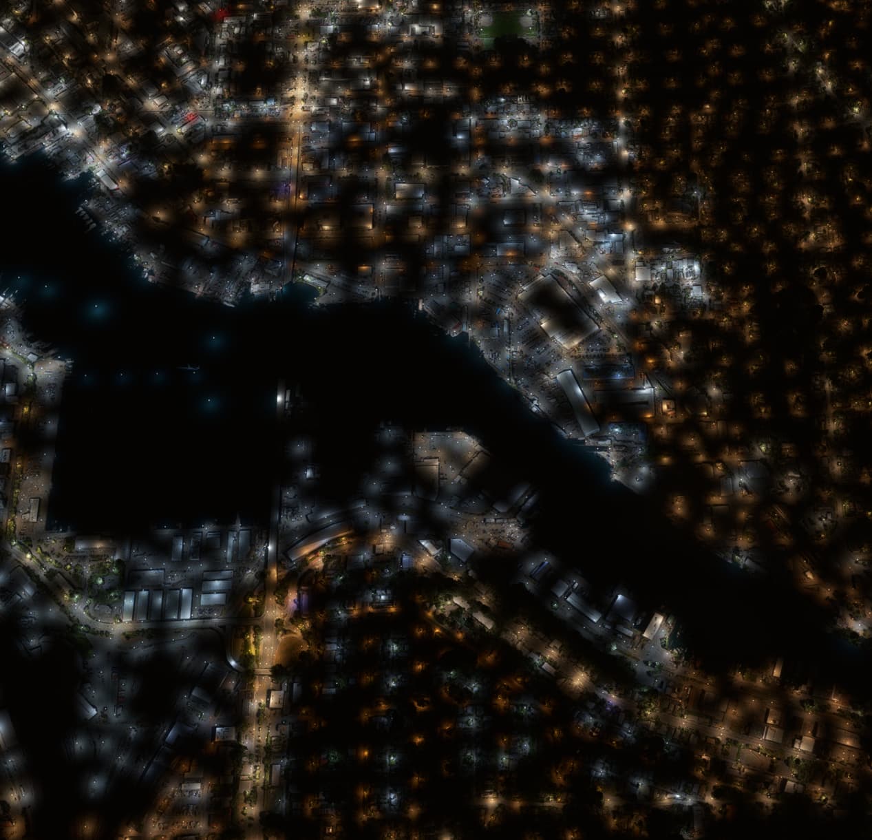 The lights are actually casting now which is good but it looks like expanded bubbles everywhere now at higher altitude. I’d suggest for this to be reverted back to how it was previously but a bit more spreaded bloom on it, maybe 20% outside of it’s radius from high altitude. This image below is likely the biggest immersion killer for me personally looking al the light bulbs from above.