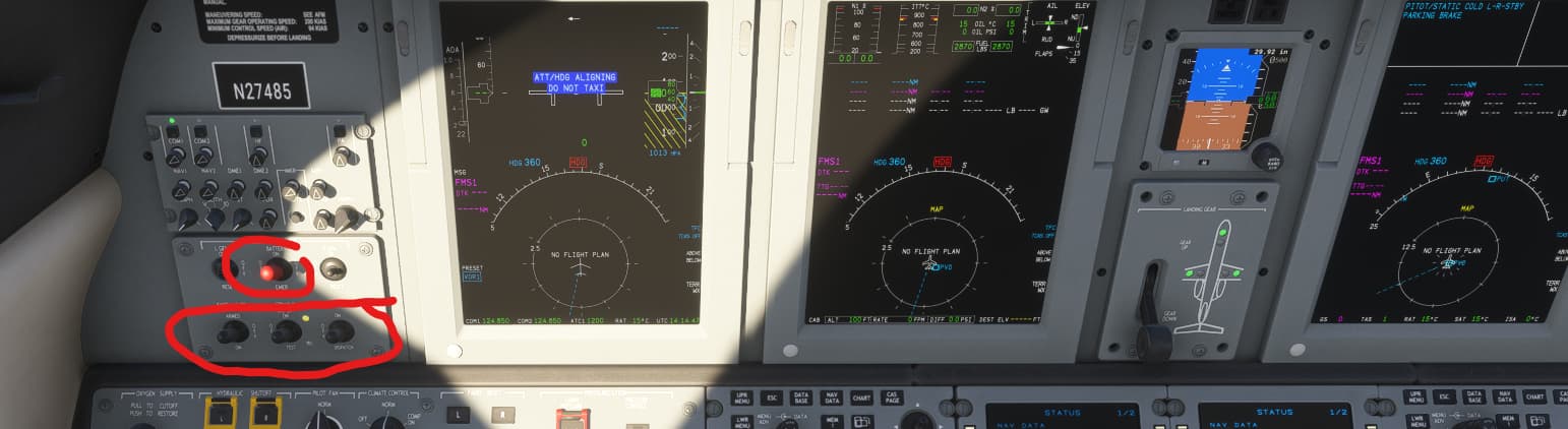 These four switches circled in red must be up (well, not emergency light necessarily) but certainly the standby and master avionics.