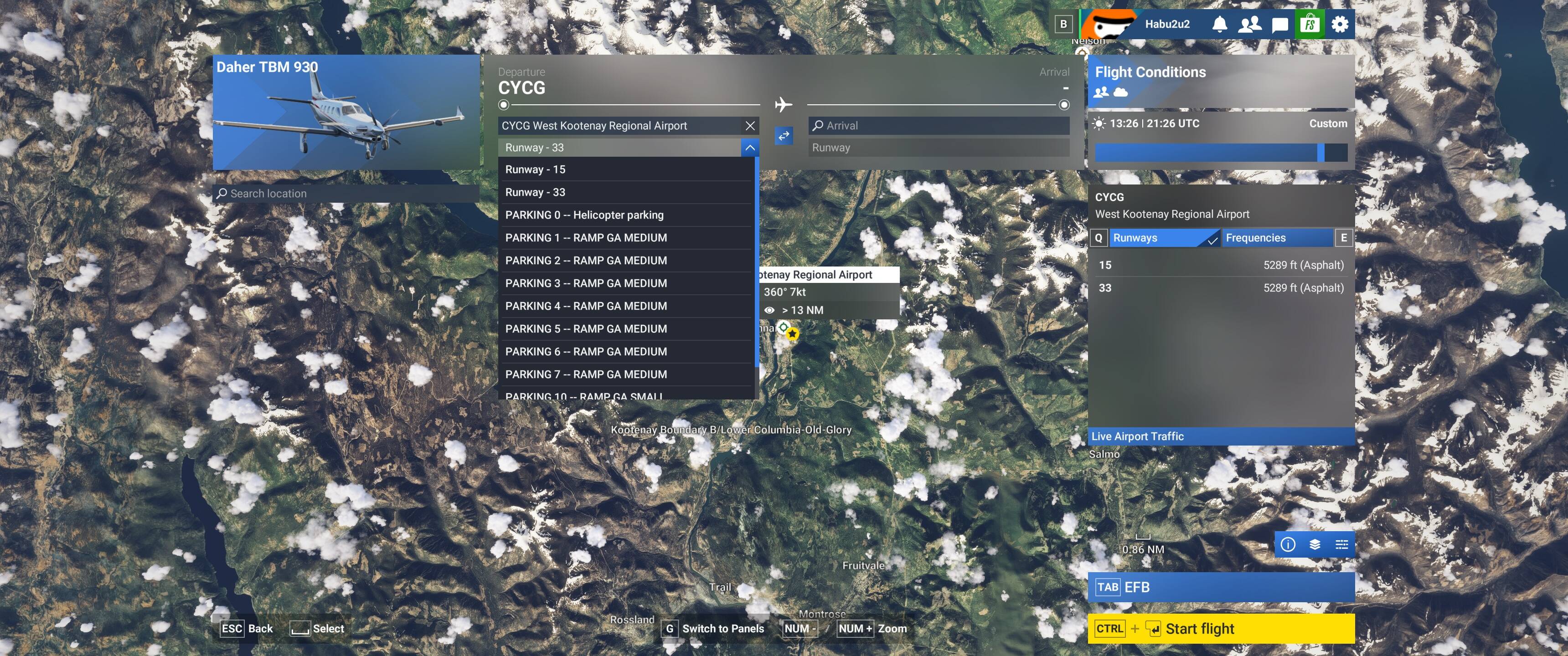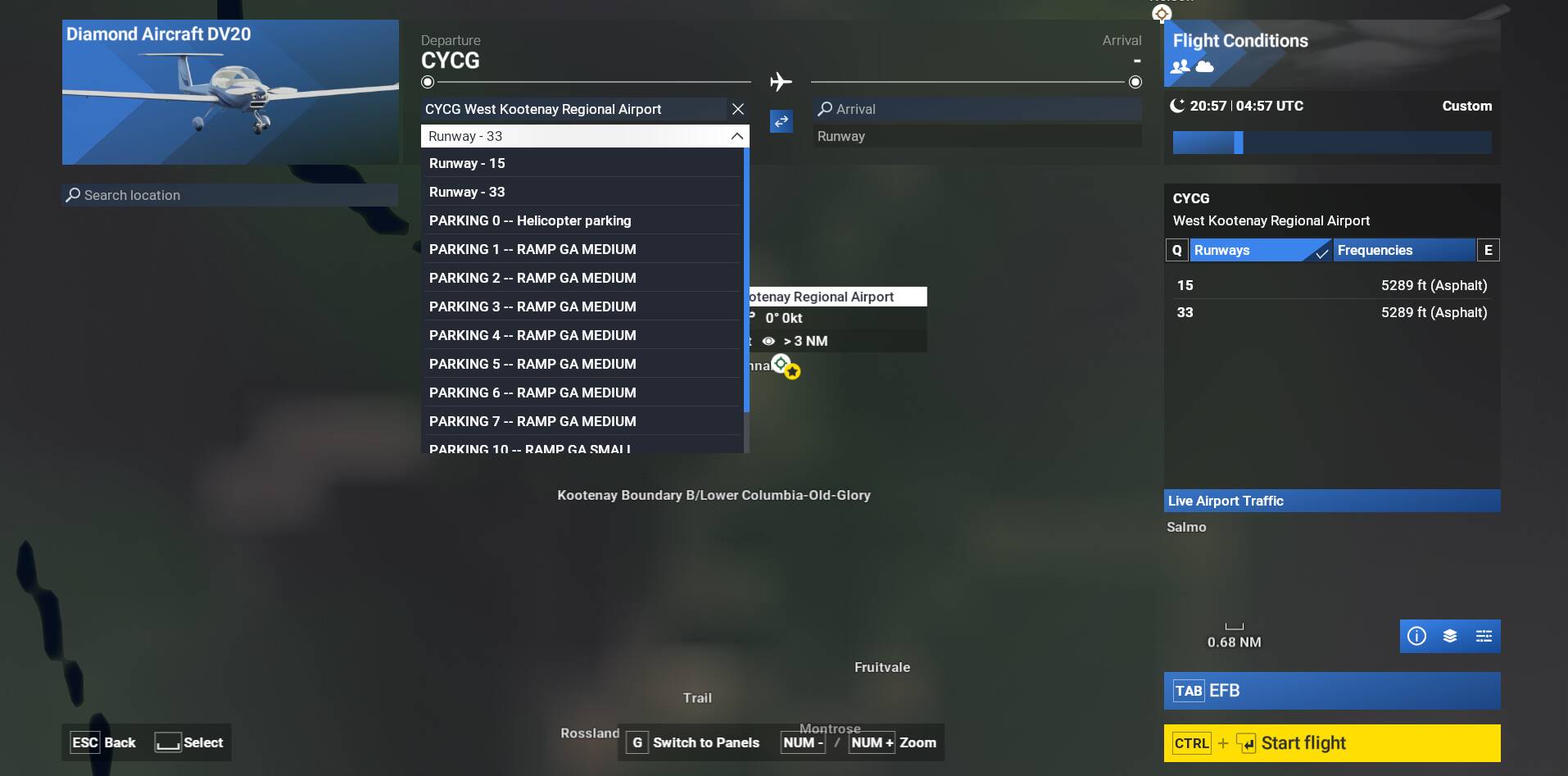 Description of the issue: Cannot spawn onto the runway at CYCG