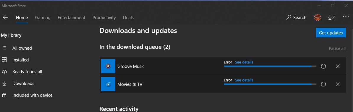 So can you show us a screenshot of that page, including the version numbers? In fact, both of those pages would be useful. One shows us what you have, the other shows what you are offered, including recent updates. A recent update would indicate whether your MS Store is working properly. You can see I got an update to “Power BI” yesterday, and “Your Phone” on 16/10/2020.
