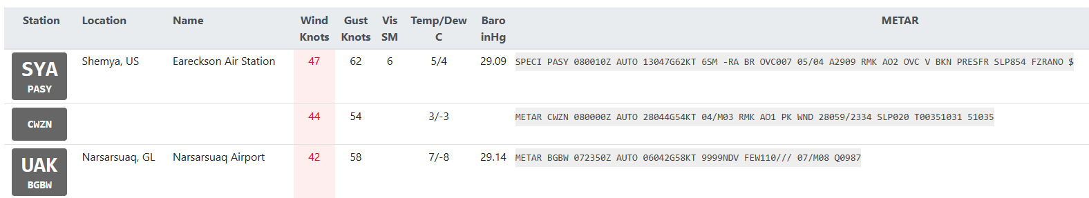 Some airport you’ve listed don’t report strong wind in Live weather now.