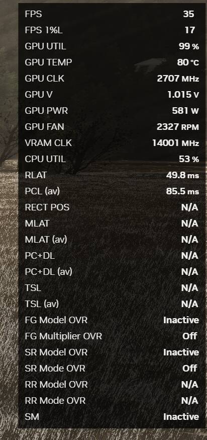 In game the status reported by the nvidia app overly (alt+r) looks like this → it seems that there is no override happening: