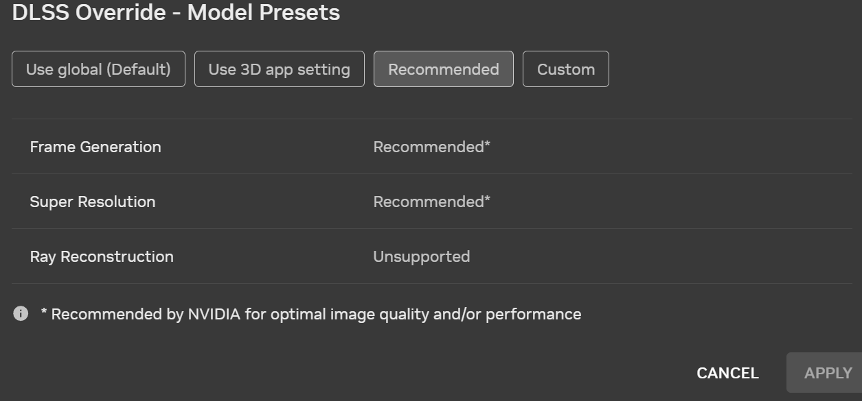 Hi All. Can some one help me to figure this out. I’d like to try the DLSS 4.5 Model presets, but the nvidia app does not show me them. I am on Driver 591.74.