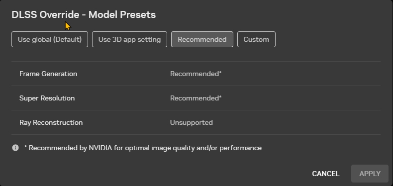 So am I. If you are using the latest Nvidia App, and you are using the 591.74 driver then set Recommended in the app rather an individual preset then you will use the preset defined by the DLSS mode and not what you have set manually.