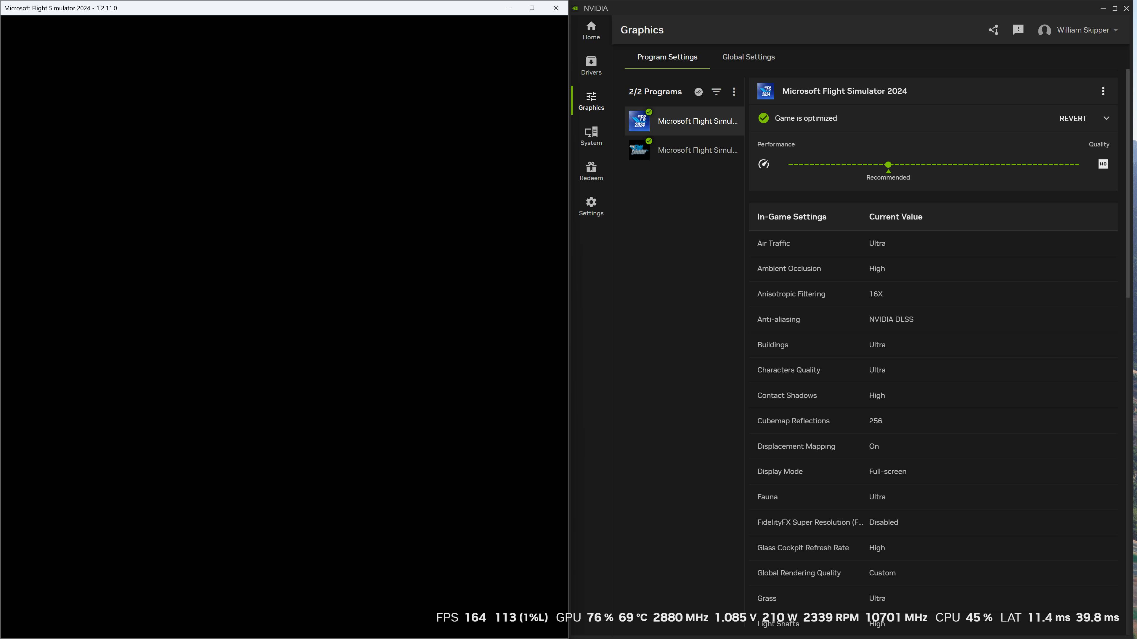 Are there any sim pilots here using the recommended settings by Nvidia app 2025? What were your findings by doing so?. I ask because I tried it today out of curiosity and was somewhat surprised with the performance on both sims after optimising I never used FG or most of the settings Nvidia put on Ultra. My performance was great with these settings today. Practically 0 stutters and increased FPS on both sims. Even halfing the fps because of FG was still much higher than I’ve had with my lower med/high settings. I see lots of post that trash their recommended settings and app usage. Help me understand as I’m shocked at performance using them. Am I lucky? Fortunate? I did remove my frame cap of 60. Could that be the reason. What am I missing ![]()