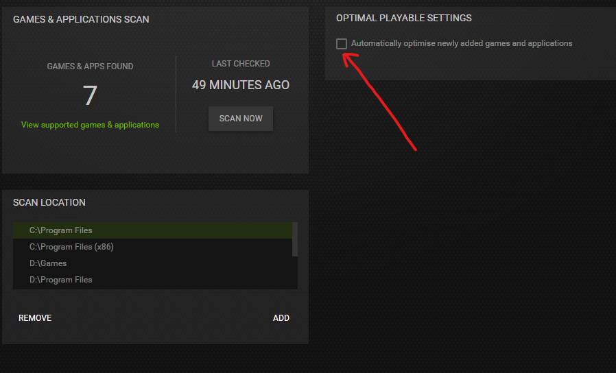 yeah, sorry i didn’t say so, but i had that option off from the start, so i could hit “optimize” at my own will if i wanted to see what nvidia “thought” was best for my configuration. As i expirimented with it, i just noticed that it’s just not giving the settings my system can handle, rather underrating it’s abilities, which resulted in screentearing… but again, as i mentioned, in “other games”. Haven’t run msfs with nvid Gforce experience, just saying i’m staying quite the distance away from it.