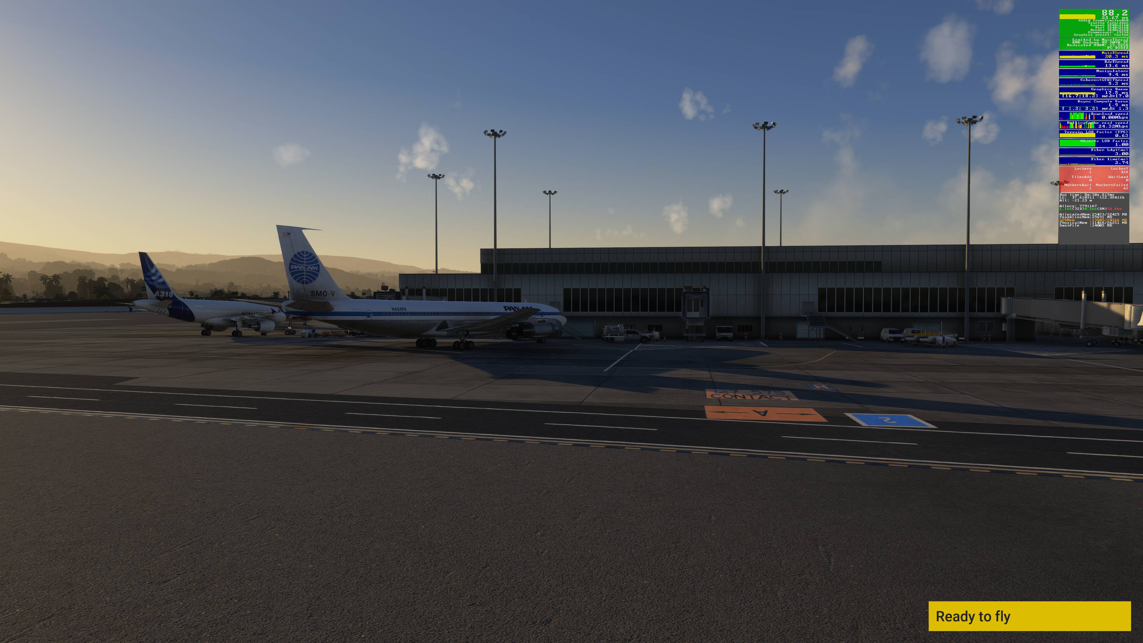 @SmotheryVase665 I concur in my experience the significant pop in issue in the original post from op is not happening to me either. However the mainthread and renderthread spiking (although improved, still exists with higher settings when initially panning outside the cockpit. It does settle some but initially spikes. This can cause a bit of a stutter if not using frame generation (for me). Of course it’s mostly all settings dependent. Frame gen solves it too. Thus my thought process on adjusting vram use for the ultra precache setting only. No harm no foul, I’ll bow out as gracefully as I can here. (inibuilds A320 v2, TLOD 330, Ultra buildings, Trees, AI live traffic, DD KEWR, stock JFK) And I’ll add. no other performance issue for me whatsoever.