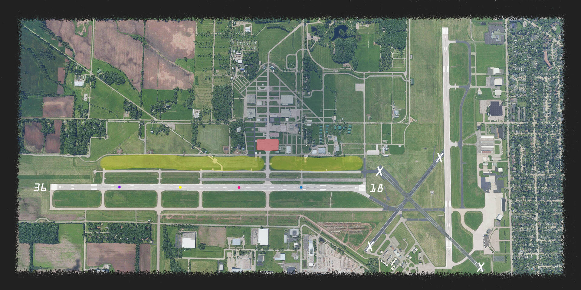 The primary runways that will be used are 18 and 36. Please use the real world direction of the wind to determine which runway is being used (you do not have to use live weather in-sim if you don’t want to).