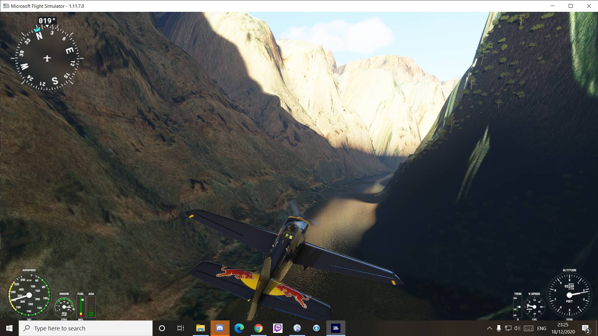 As stated above, you should stay within the walls of the canyon, race-control then said “fly max 1000ft above water level” (there is no radar altimeter in the xtra), so the race came down to guessing your height in a way that you could cut the most corners…