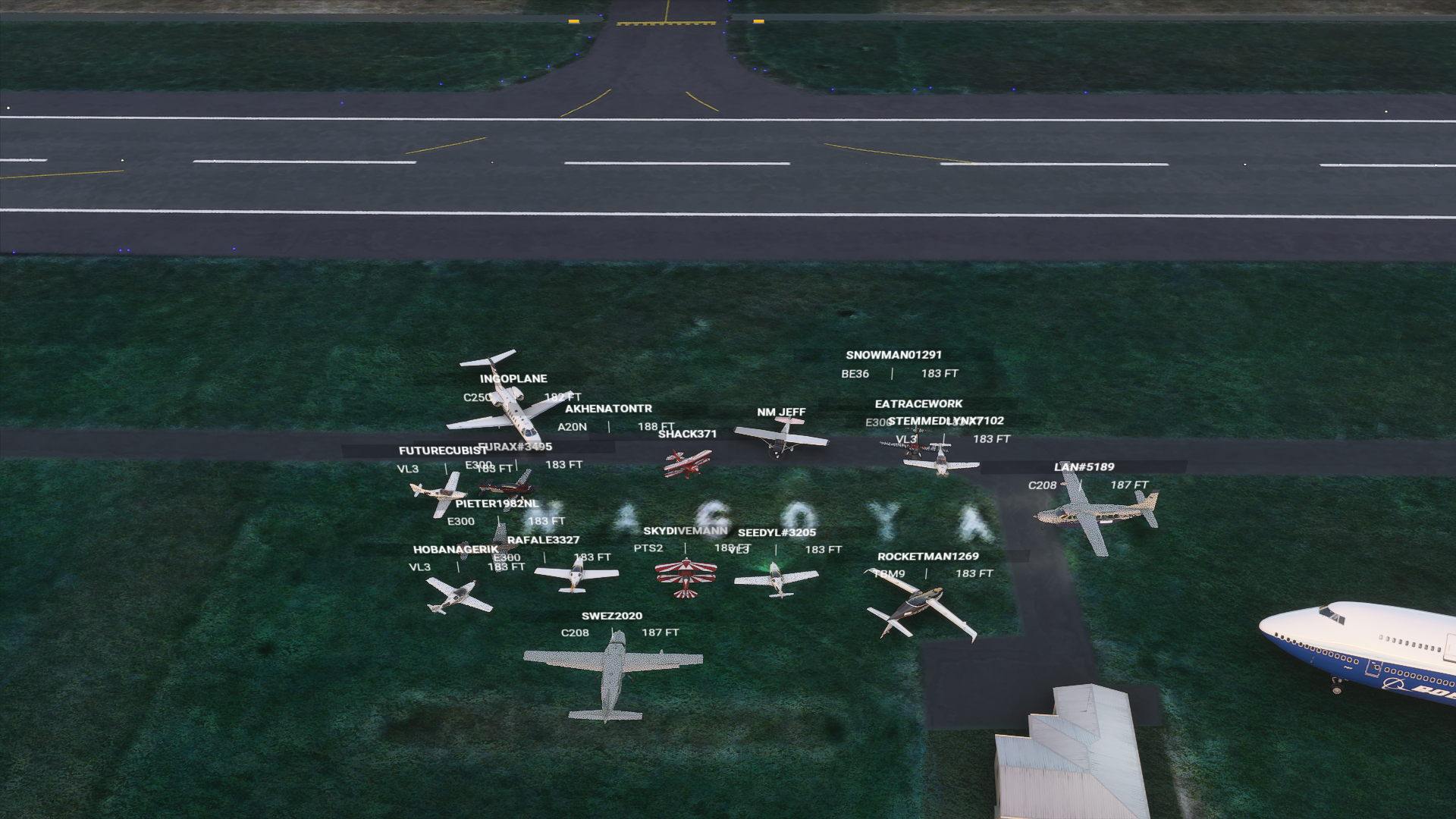 With all due respect, if Microsoft’s idea of a “Community Fly-In” is to post a 168nm flight plan, fly half of it, and then slew to the final waypoint for a “Community Screenshot” (after leaving at least half the group behind), well, let’s just say I’m going to have to adjust my expectations. Oh well, it was a nice group of people and it was fun for a bit.
