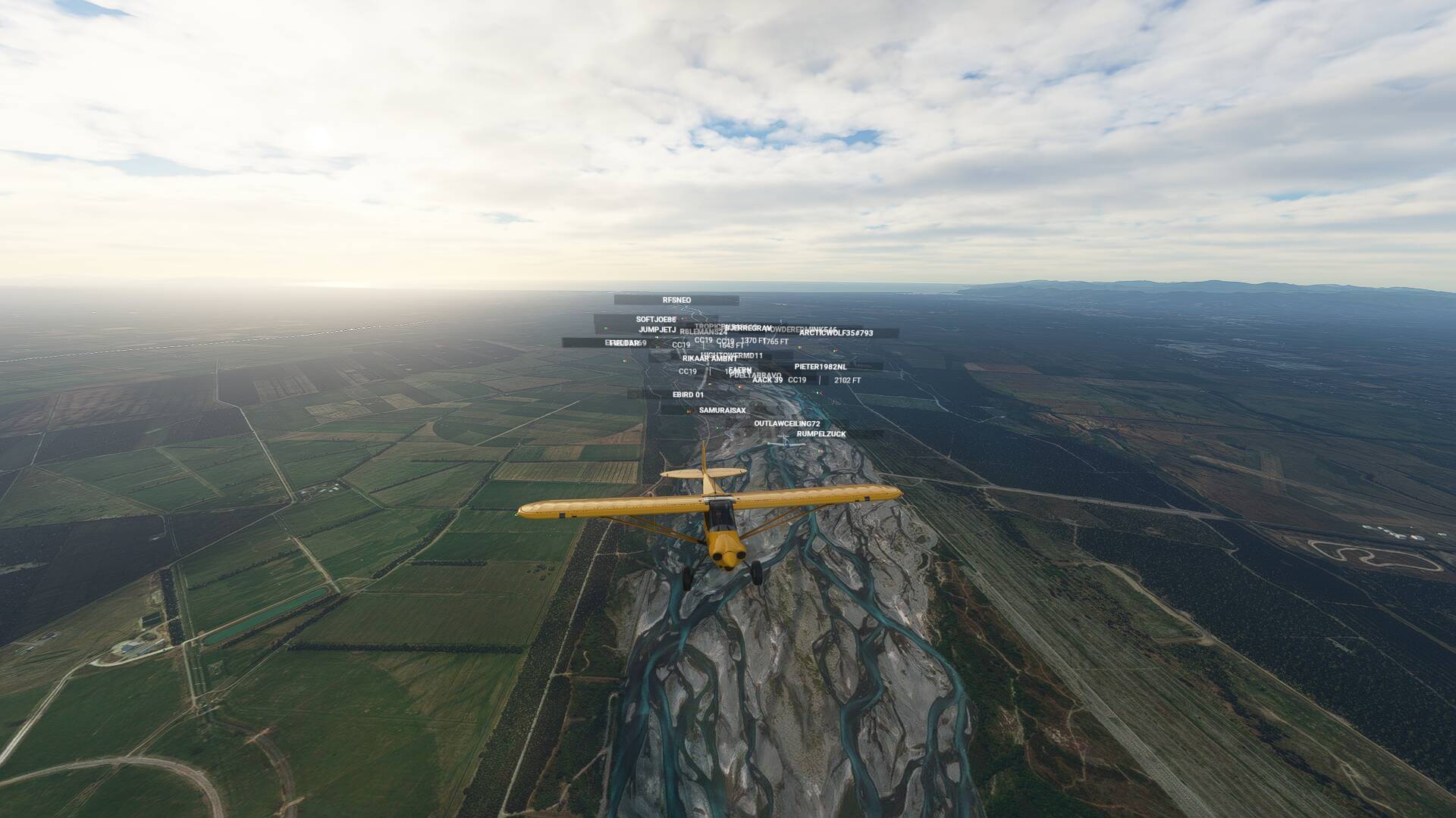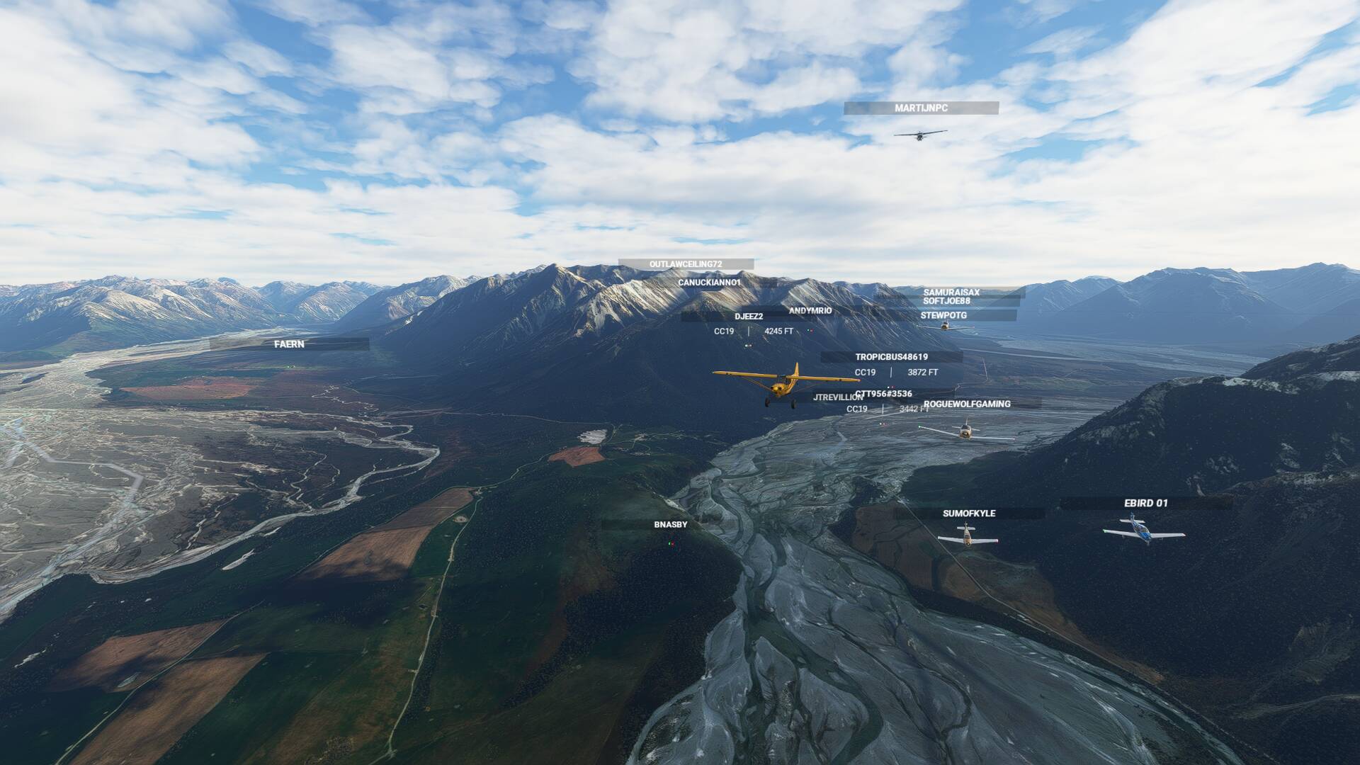 It is advised in this flight to turn off both aircraft collisions and terrain collisions. If you do crash, you can use “slew” mode to join the pack. If the pack will be too scattered before the first stop, we will use slew on a defined point to regroup.