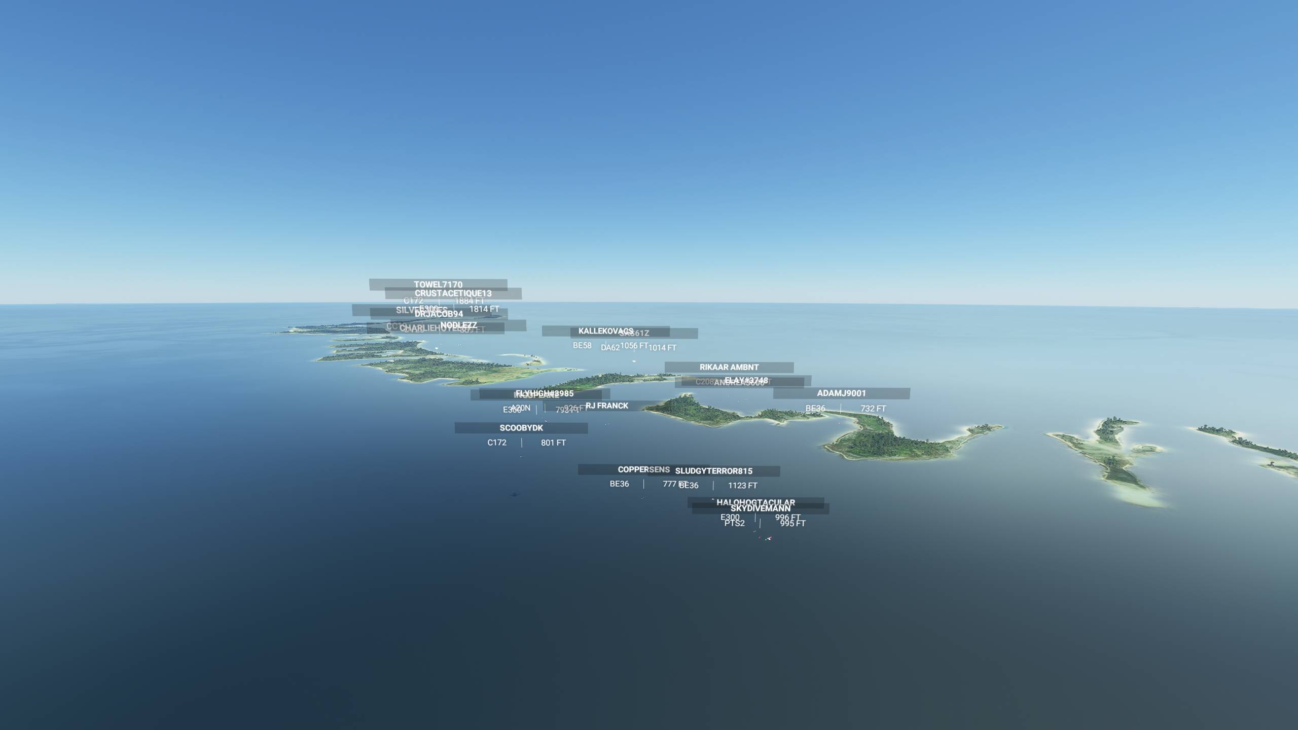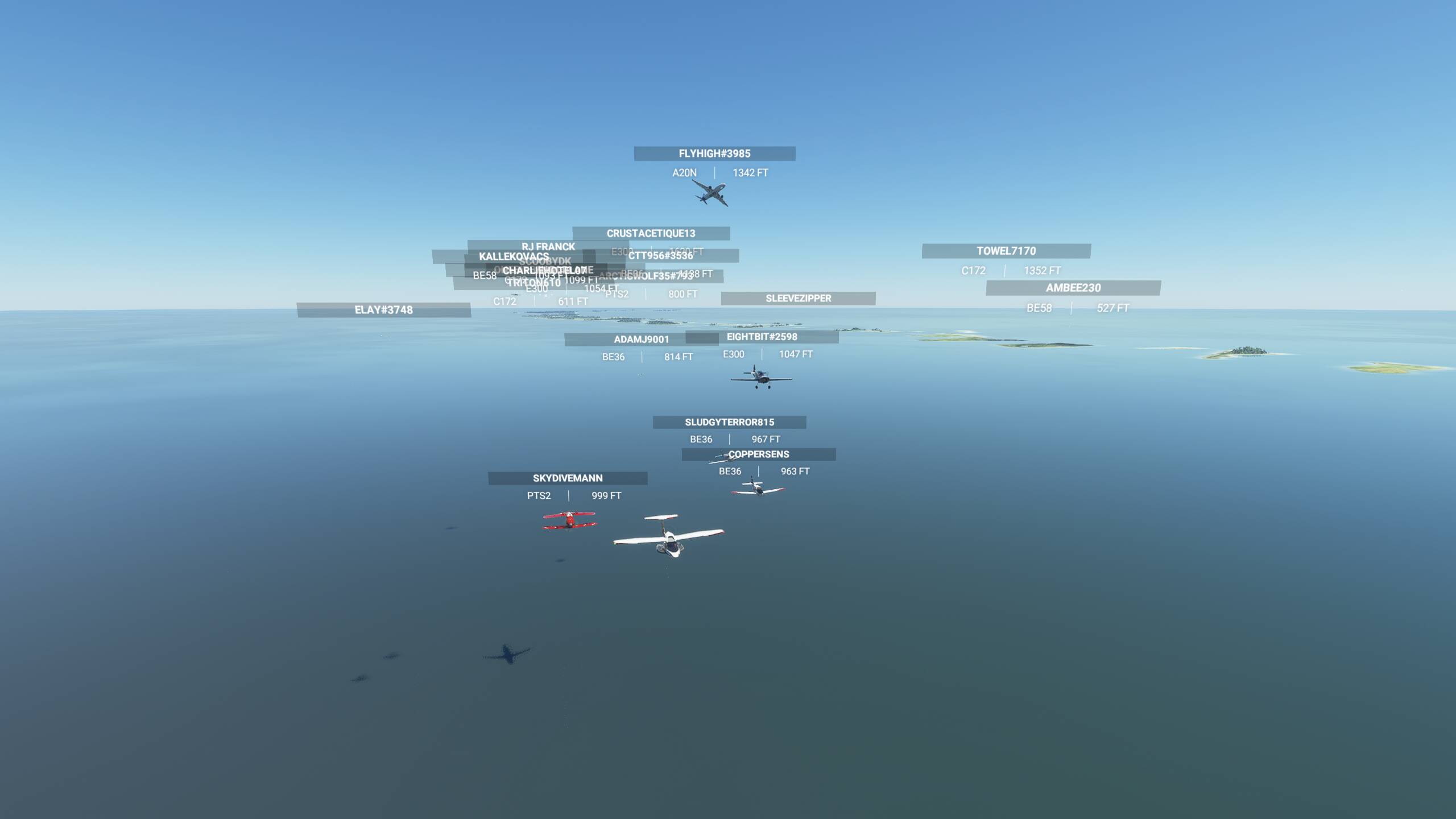 It is advised in this flight to turn off both aircraft collisions and terrain collisions. If you do crash, you can use “slew” mode to join the pack. If the pack will be too scattered before the first stop, we will use slew on a defined point to regroup.