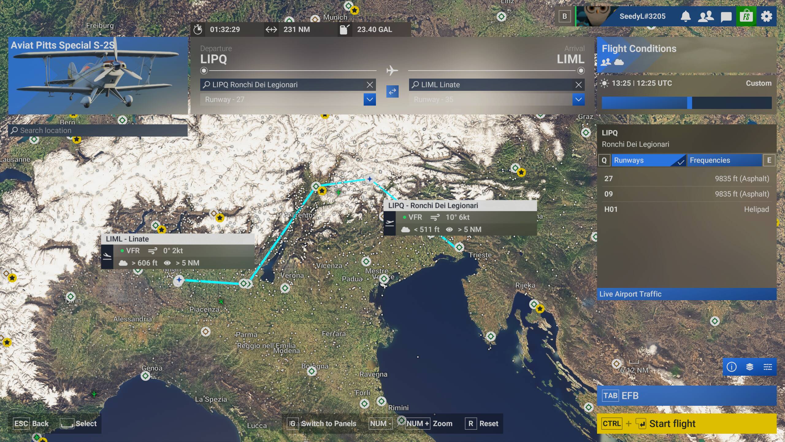 We will be starting at LIPQ for Option 1 and CA35 for Option 2. Please load your aircraft 10 minutes prior to take off and taxi over to the runway in preparation for departure.