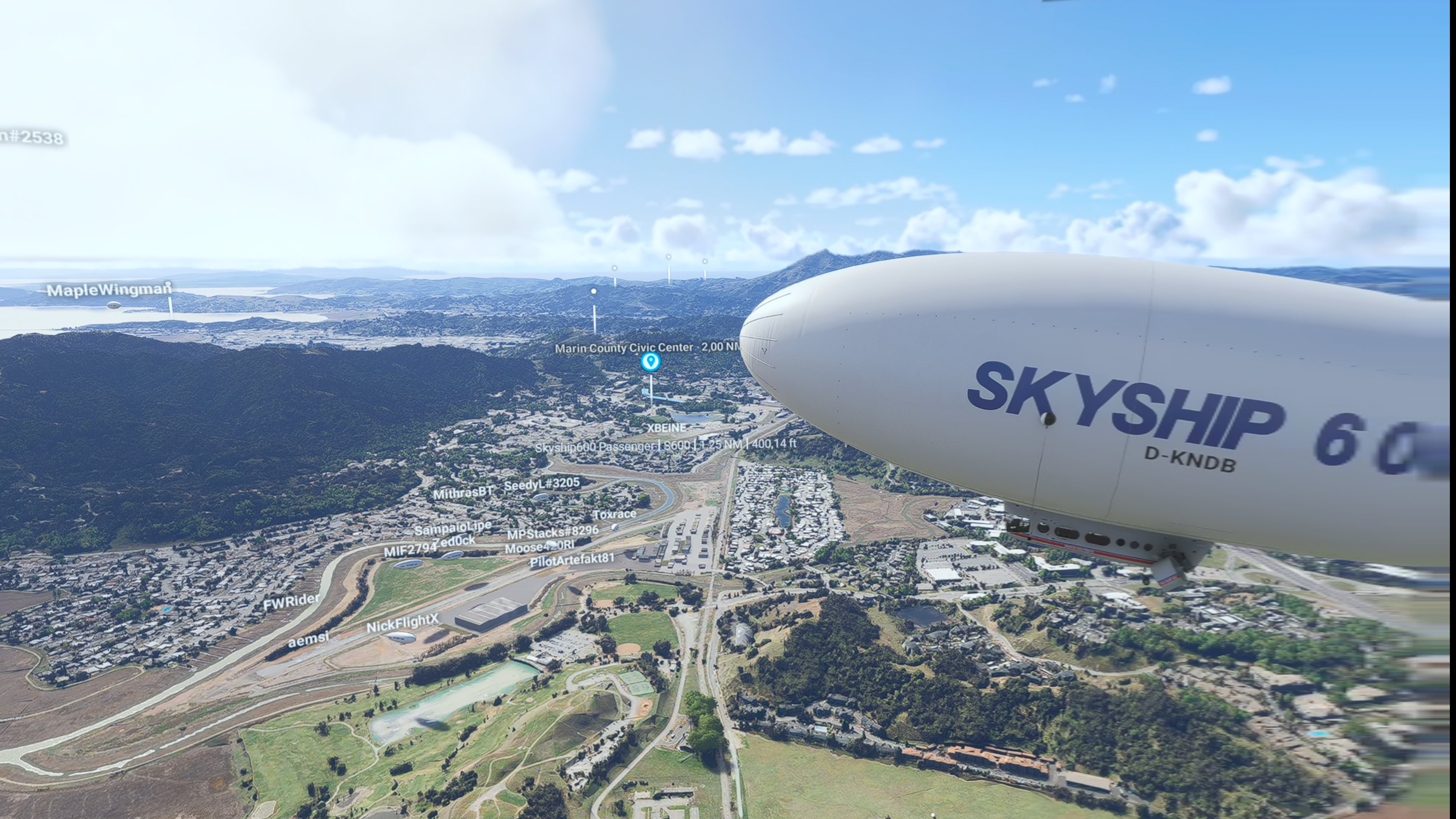 Recommended aircraft: Cirrus SR22T, Diamond DA40, Pitts Special, Extra 330LT, or any aircraft of your choice with a cruise speed of 120+ knots for Option 1; SkyShip 600 blimp for Option 2.