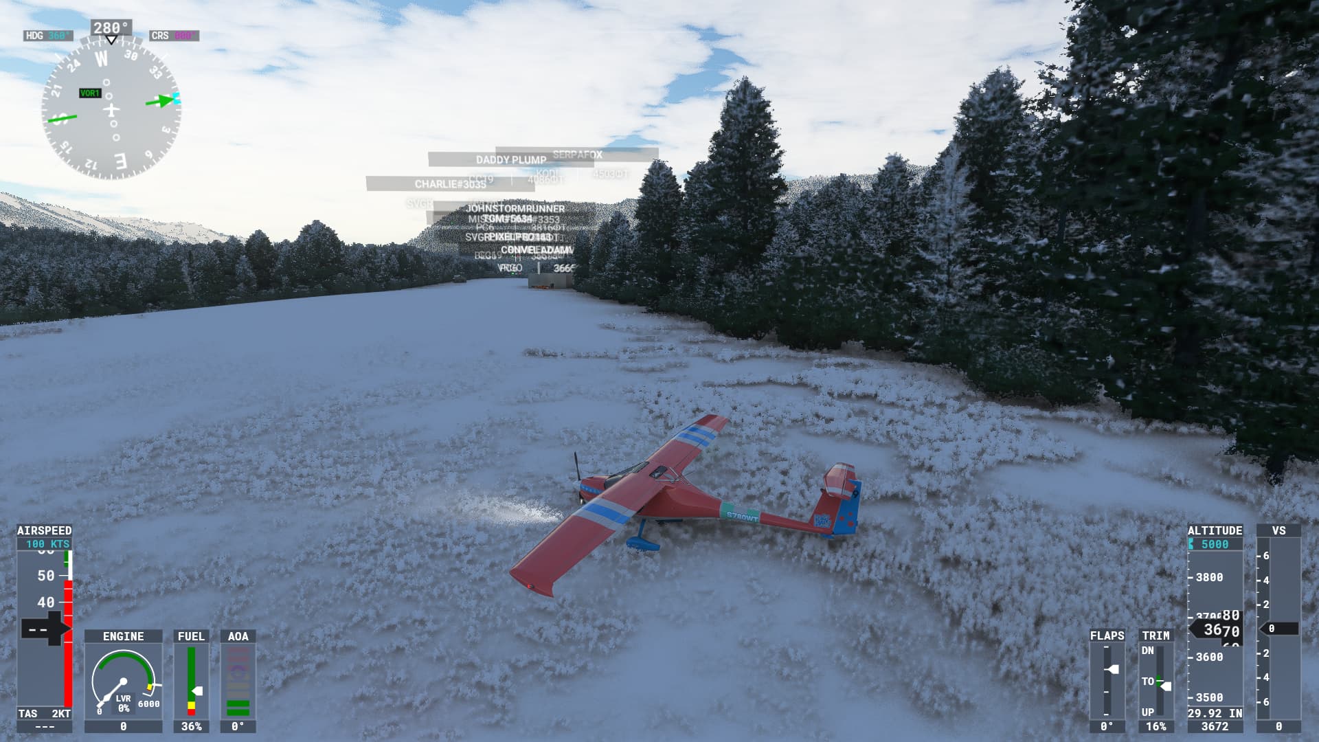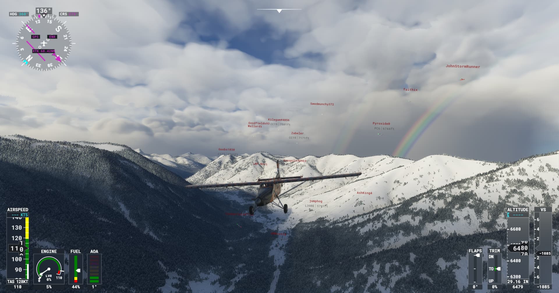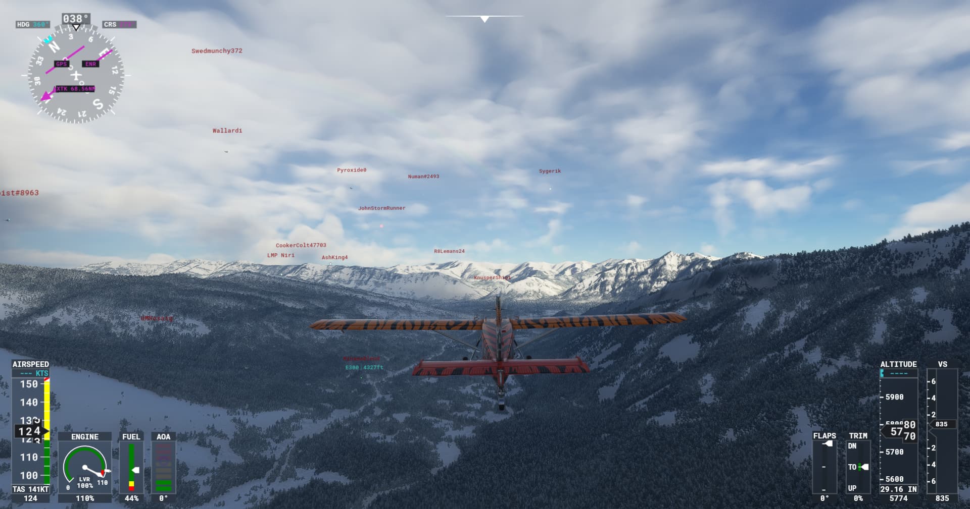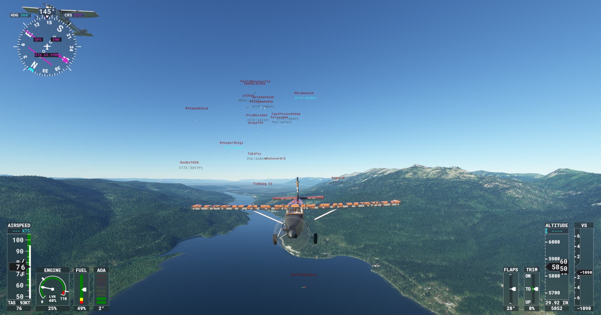 It is advised in this flight to turn off both aircraft collisions and terrain collisions. If you do crash, you can use “slew” mode to join the pack. If the pack will be too scattered before the first stop, we will use slew on a defined point to regroup.