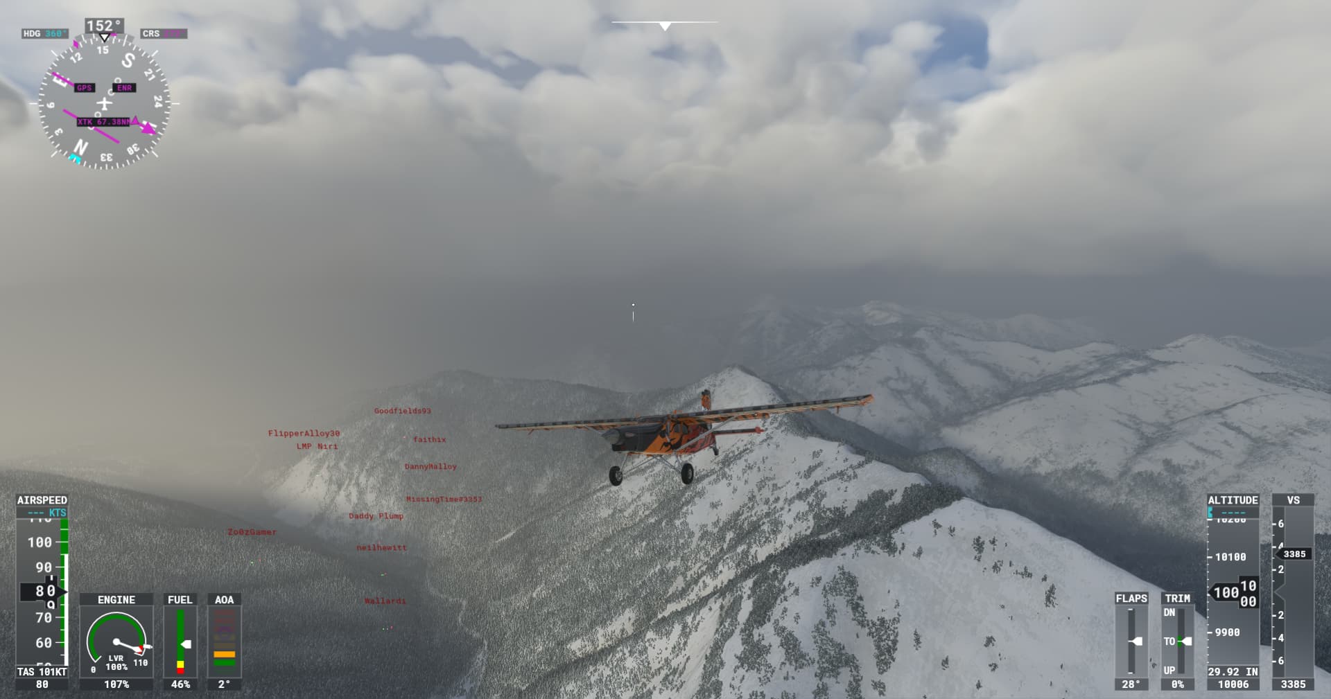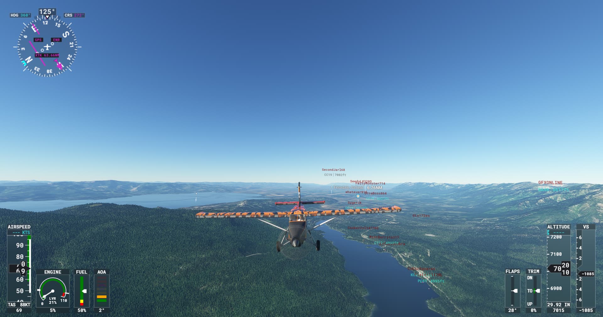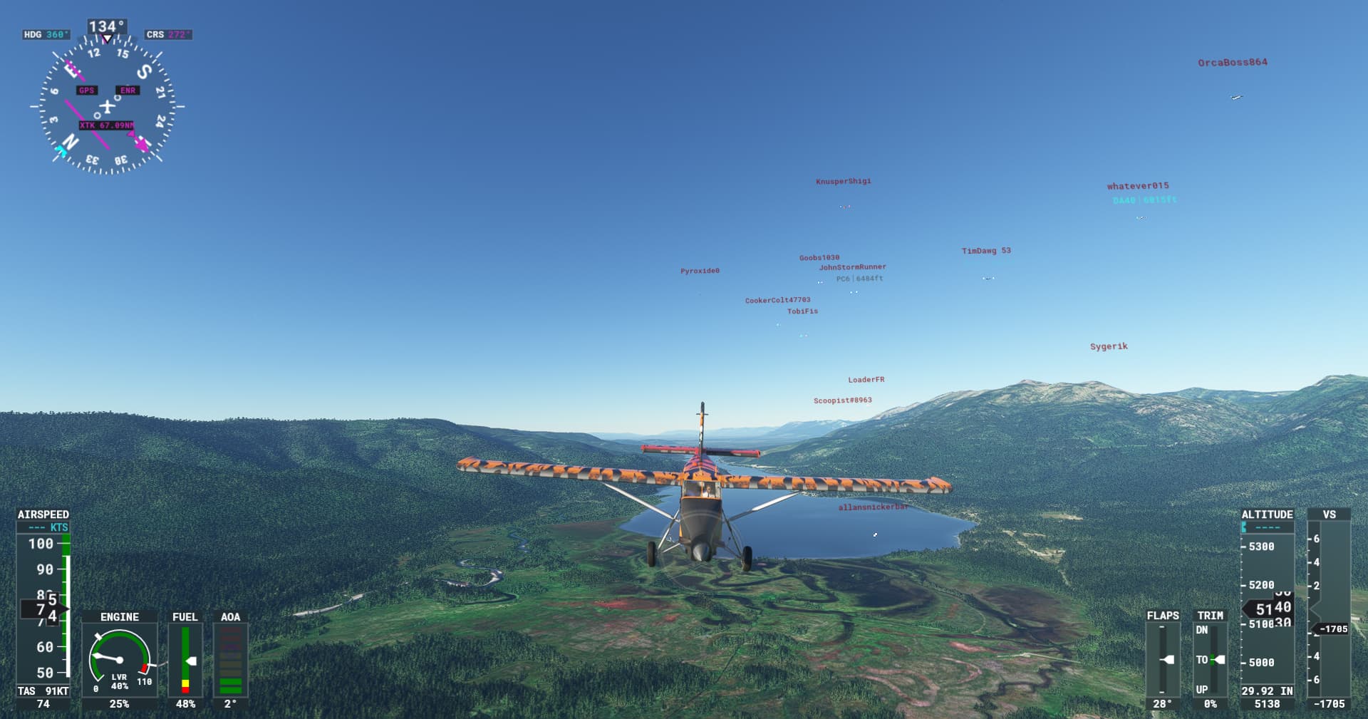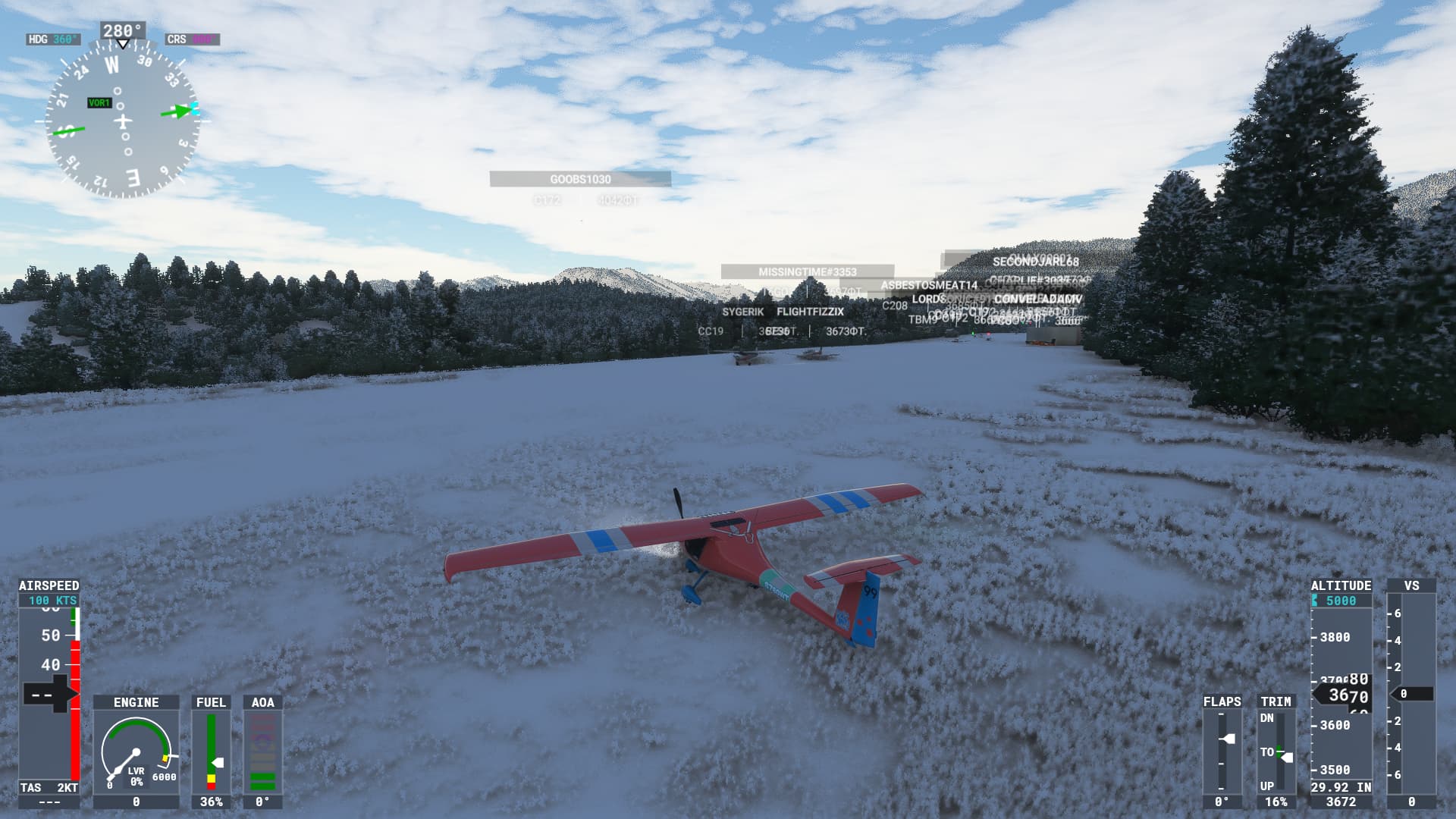 It is advised in this flight to turn off both aircraft collisions and terrain collisions. If you do crash, you can use “slew” mode to join the pack. If the pack will be too scattered before the first stop, we will use slew on a defined point to regroup.