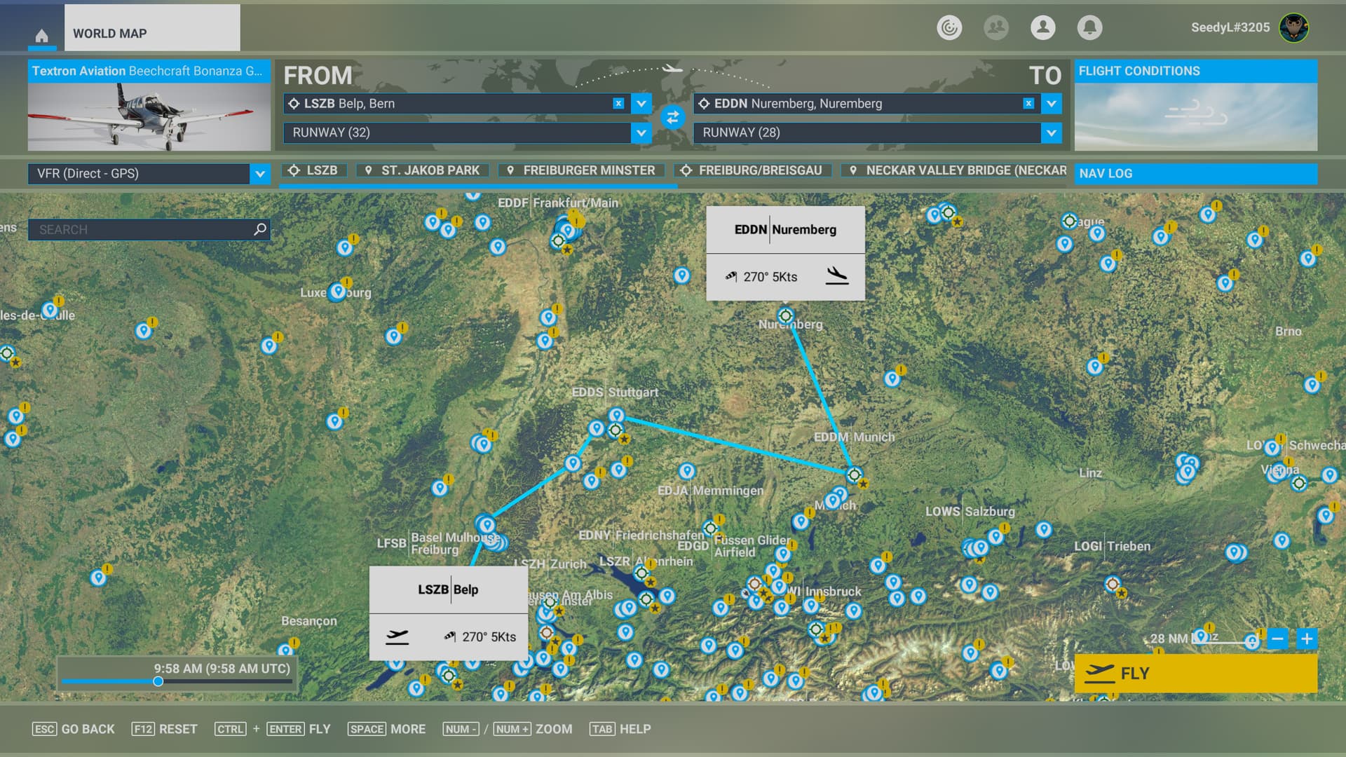 We will be starting at LSZB. Please load your aircraft 10 minutes prior to take off and taxi over to the runway in preparation for departure.
