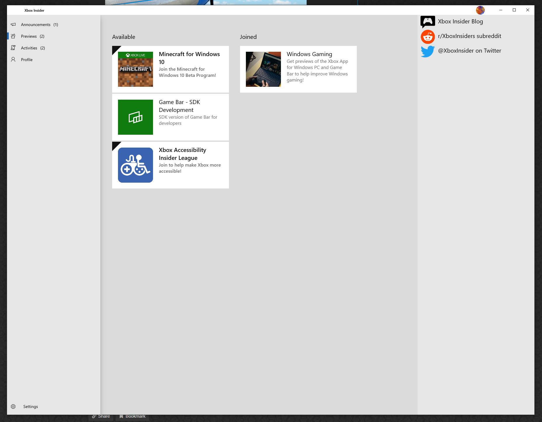 Did you need to keep shutting down xbox insider and restart to refresh or did it just appear whilst you left it open?