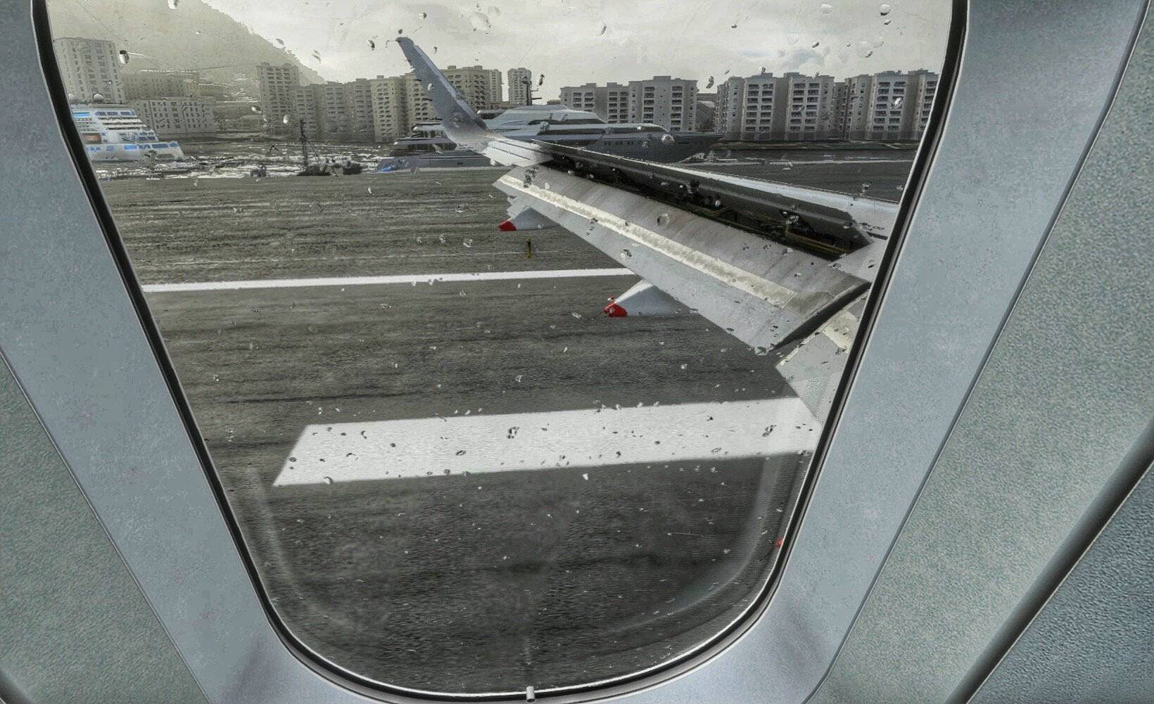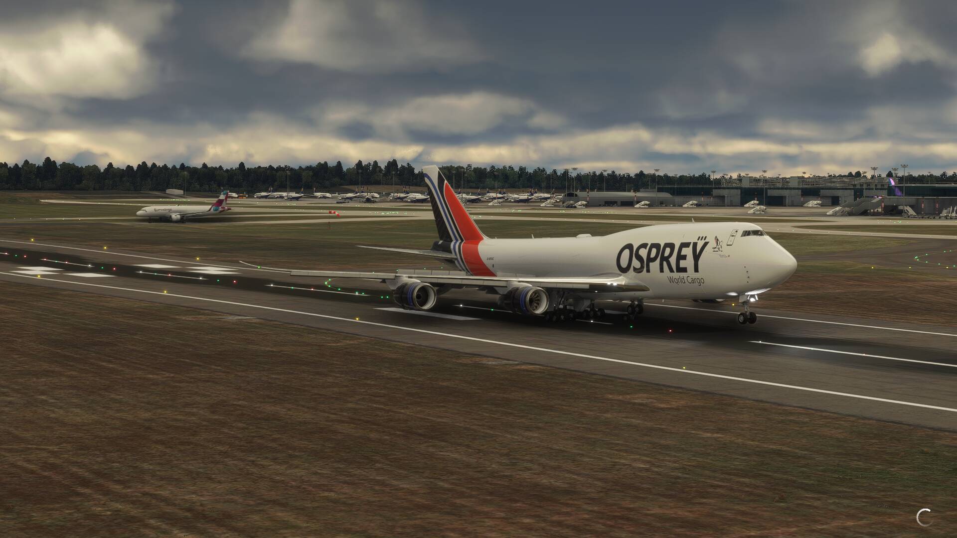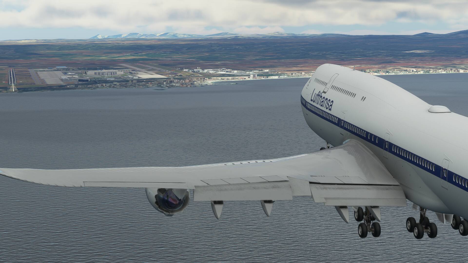 Moments before touchdown at Stansted on approach in the Boeing 747-8