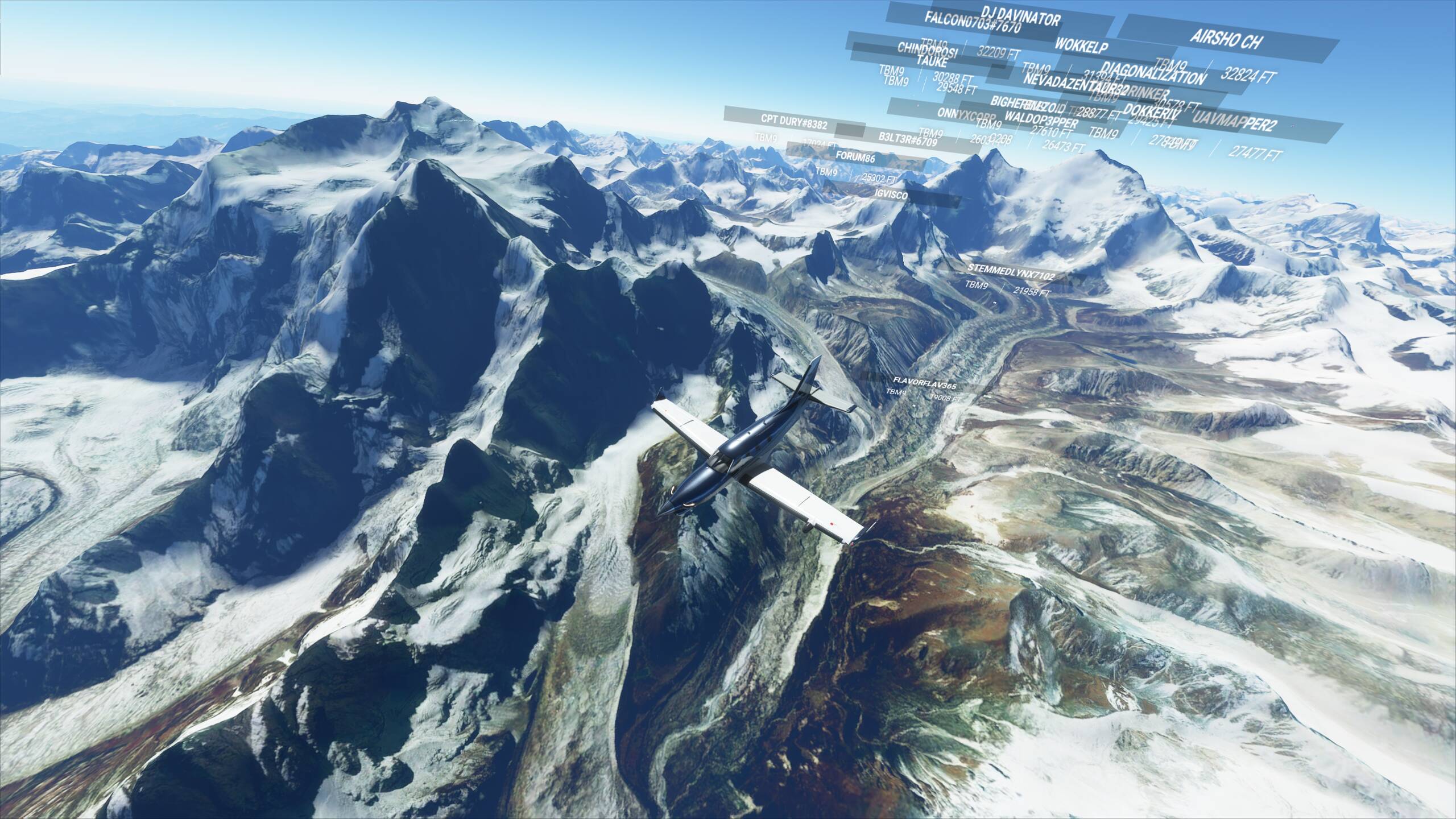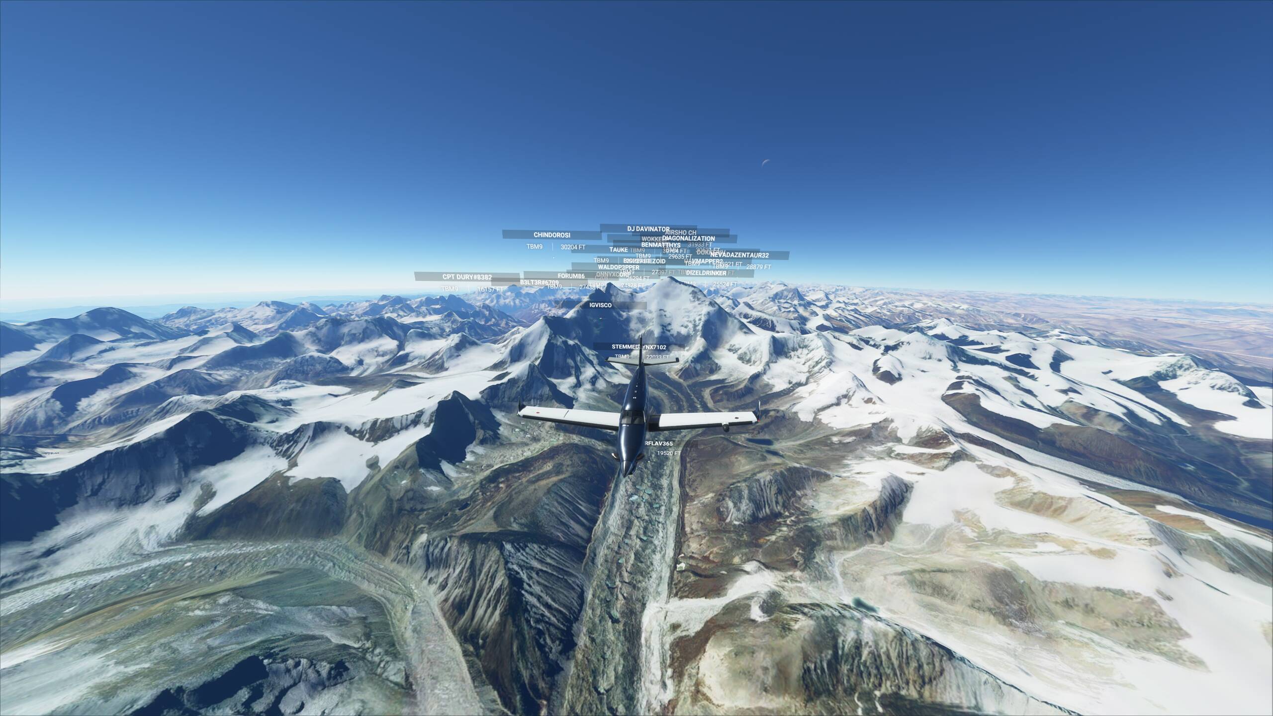 Higher Ground: Capture a screenshot at some high altitudes looking down, with or without your aircraft in view. Hope you aren’t afraid of heights!