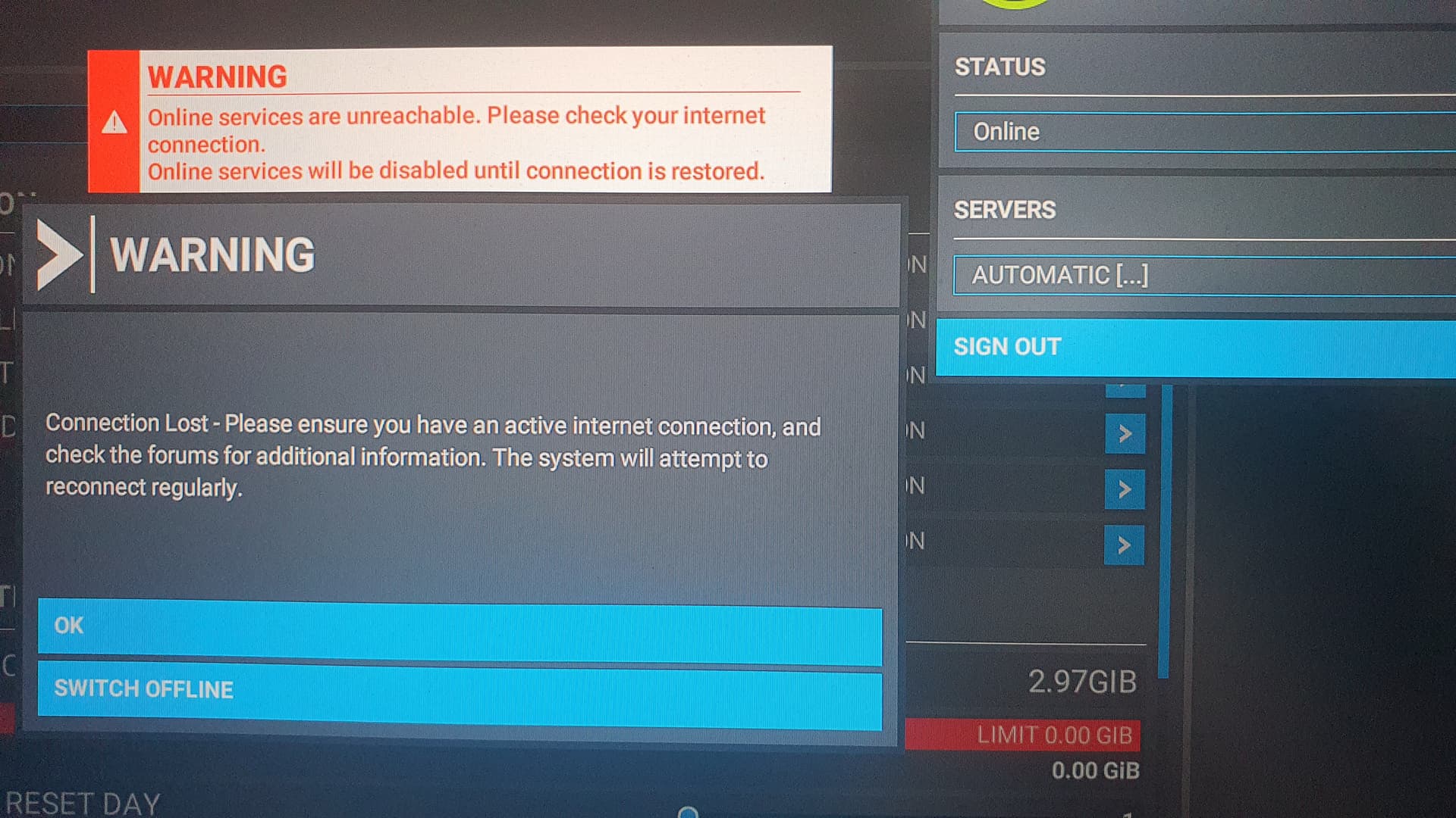 Even worse because the connection to the servers has been re-established but the big red box won’t bugger off.